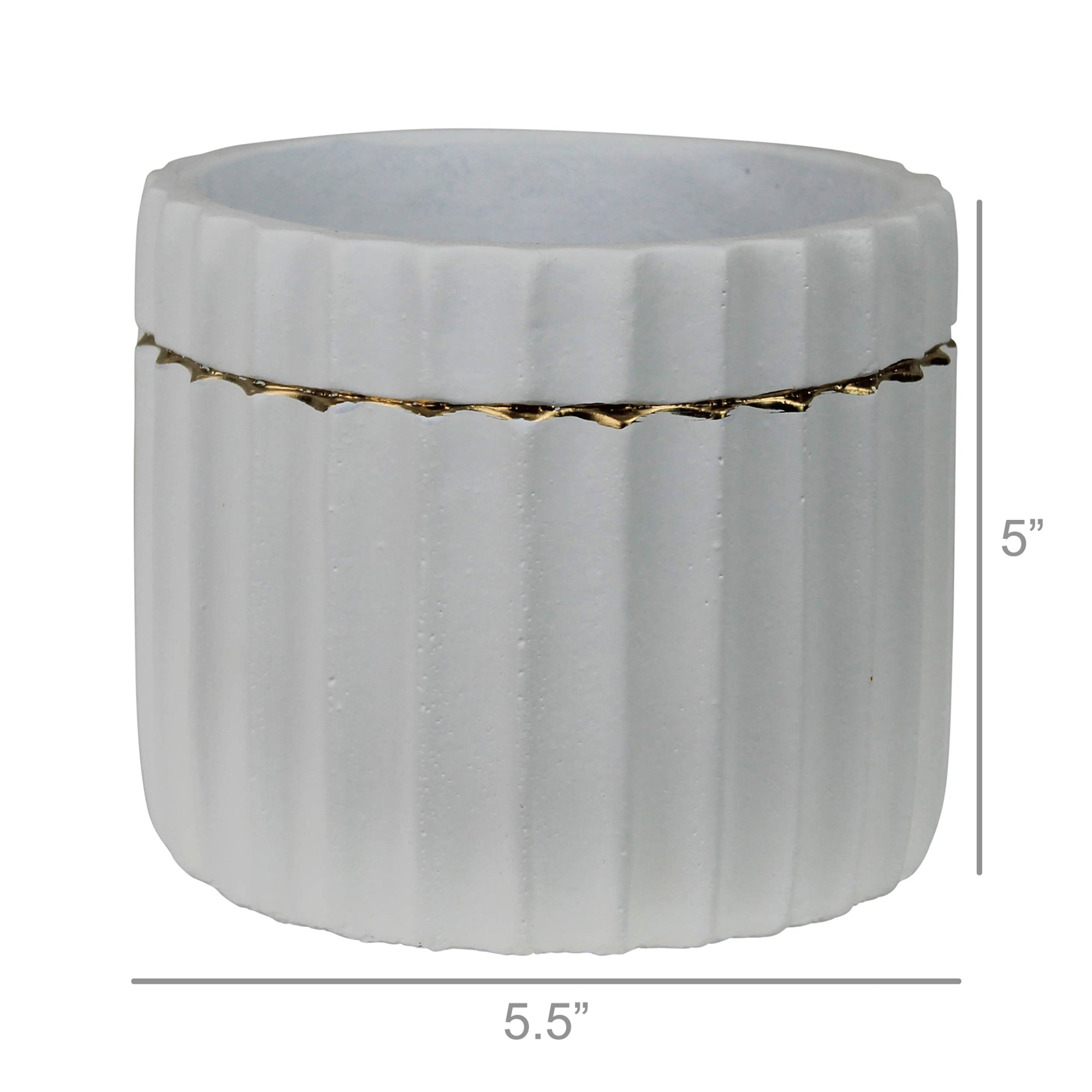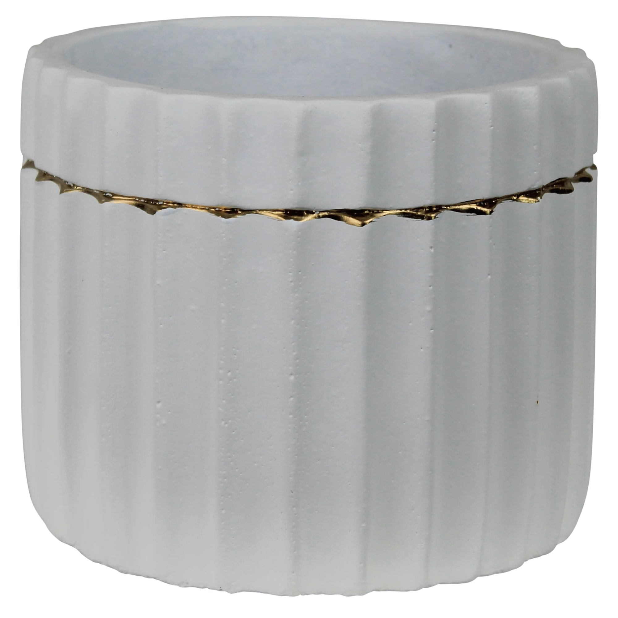 Skylar Cachepot, Cement, White & Gold