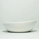 Asymmetrical with curved walls, the førs slanted serving bowl allows for easy serving and shared use, perfect to pass around the table. Designed as a nesting set, the shallow, complementary slanted and deep serving bowls stack into a sculpture of 3.