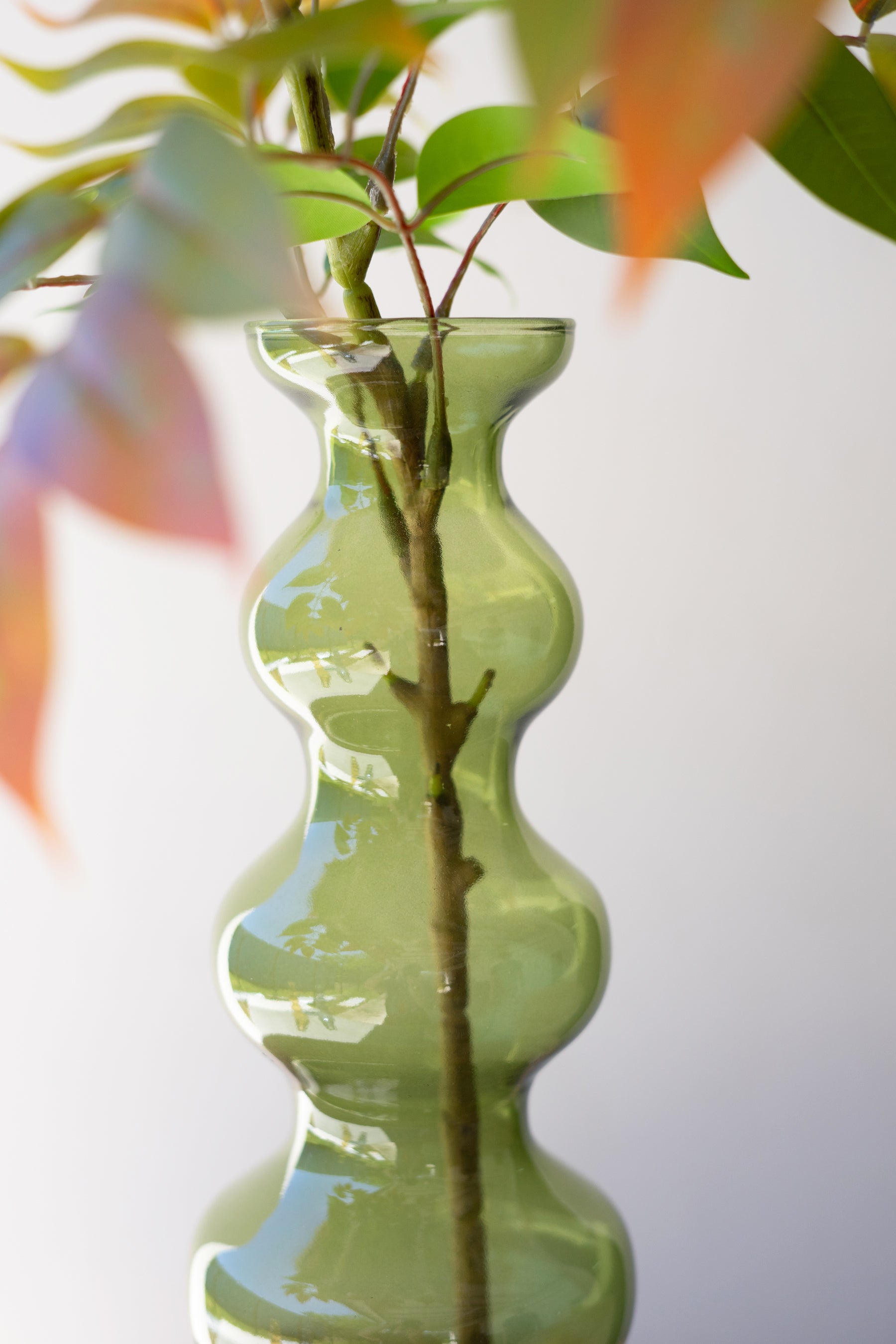 This small green vase stores bloom for you or your buddy. Gift a pair of large and small or two of the same size. Options galore for your suite space.