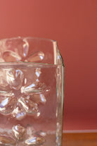 Square Glass Vase With Embossed Flowers (Pack Of 2)