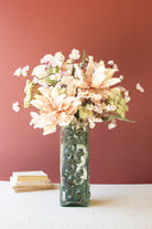 This tall square vase has three embossed flowers on the side. Fill this vase with your favorite fronds or gift one to your gardening neighbor. Any blooms complement this vase.