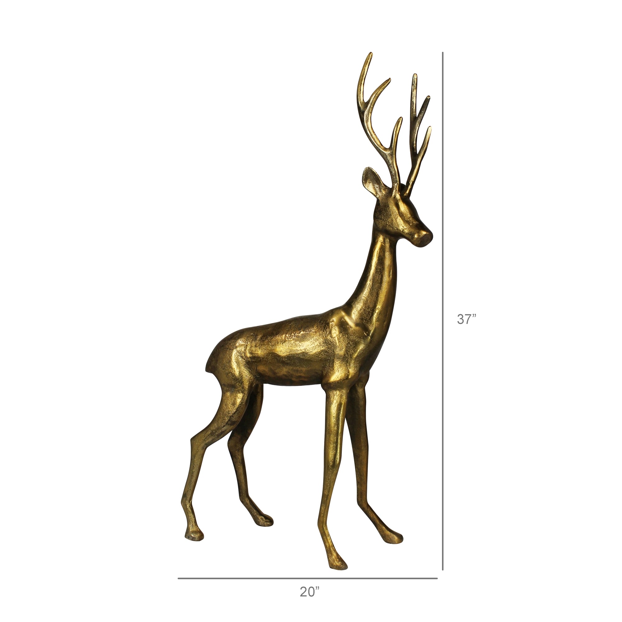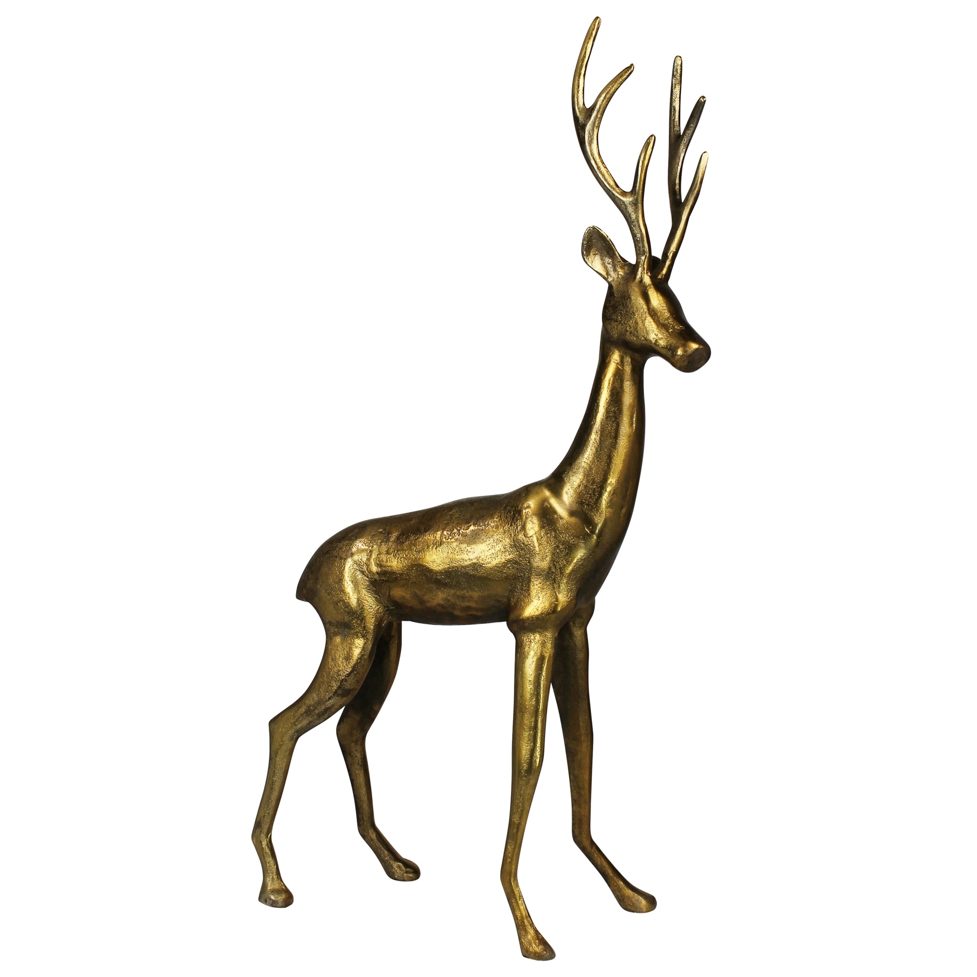 Oversized stag figure with a sleek brass finish, combining bold, modern design with timeless style. The intricate detailing and majestic stance make it a striking statement piece, perfect for adding a touch of luxury and sophistication to any space.