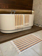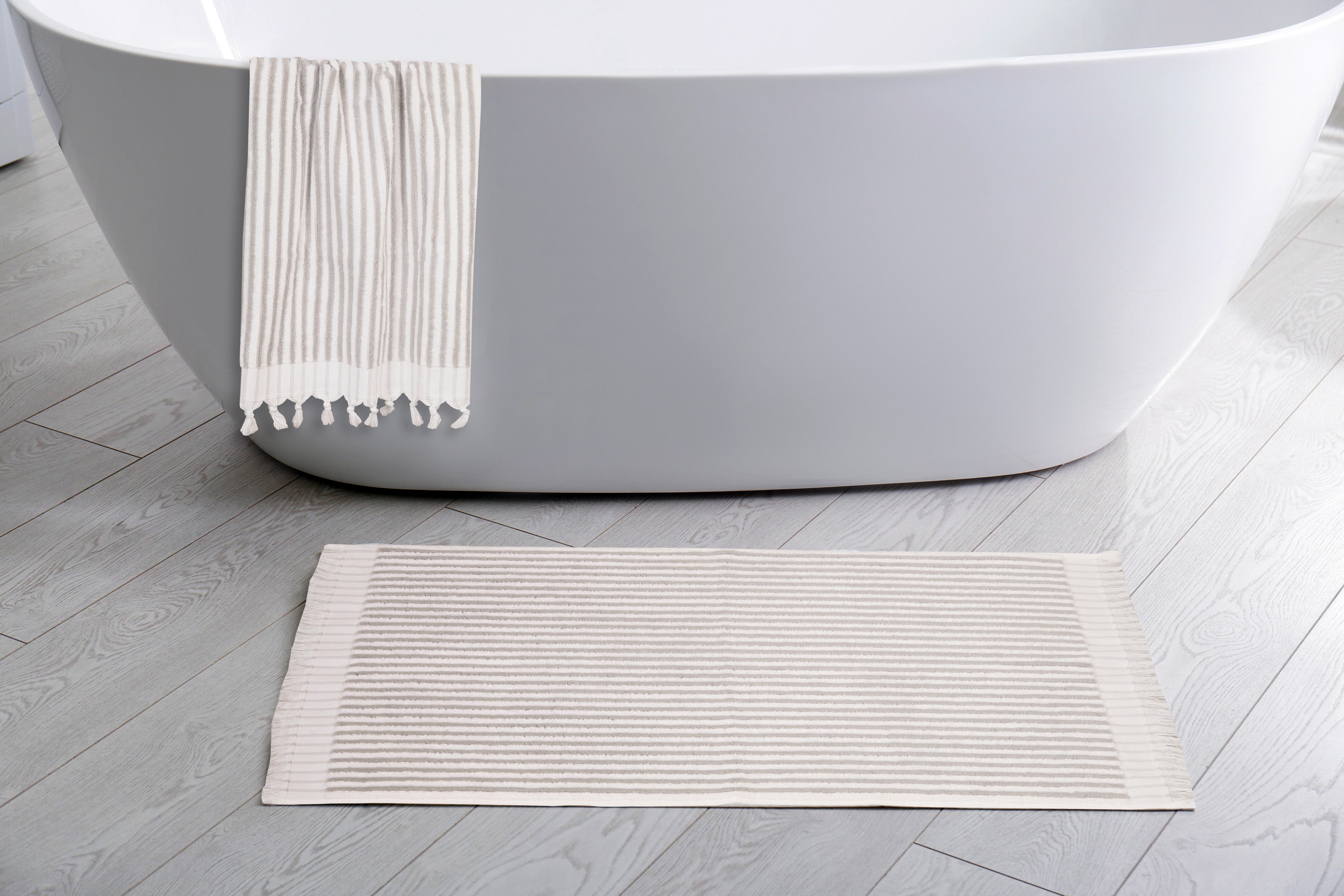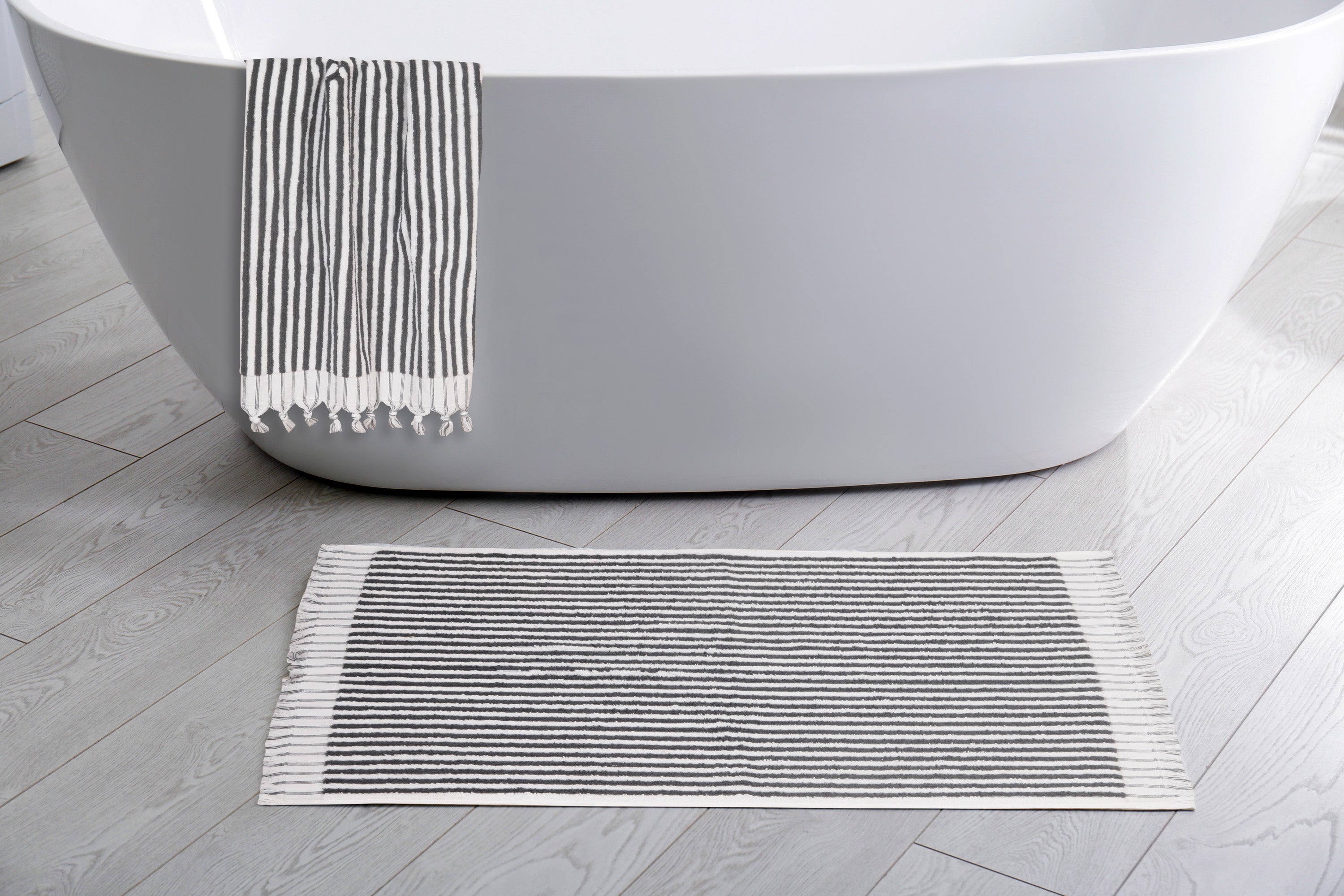 Our Stripes Bath Mat is expertly crafted with intricate details from the finest long-staple Turkish cotton. Soft under foot and super absorbent, this mat adds a worldly charm to any bathroom.