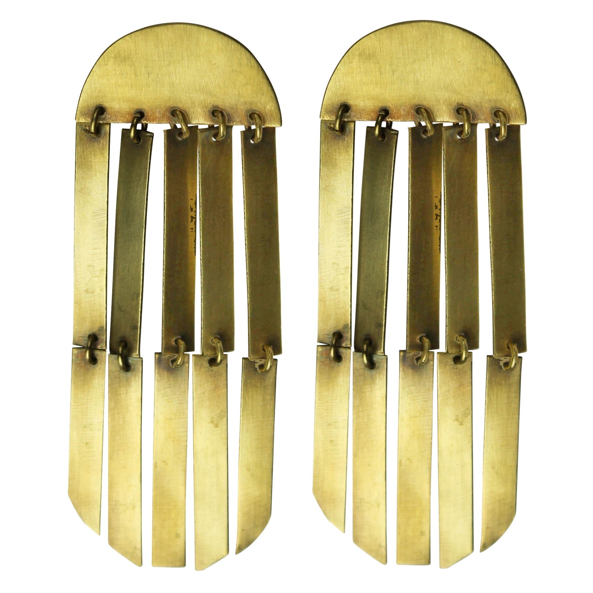 Common shapes are linked to create pleasing motion in these statement earrings.