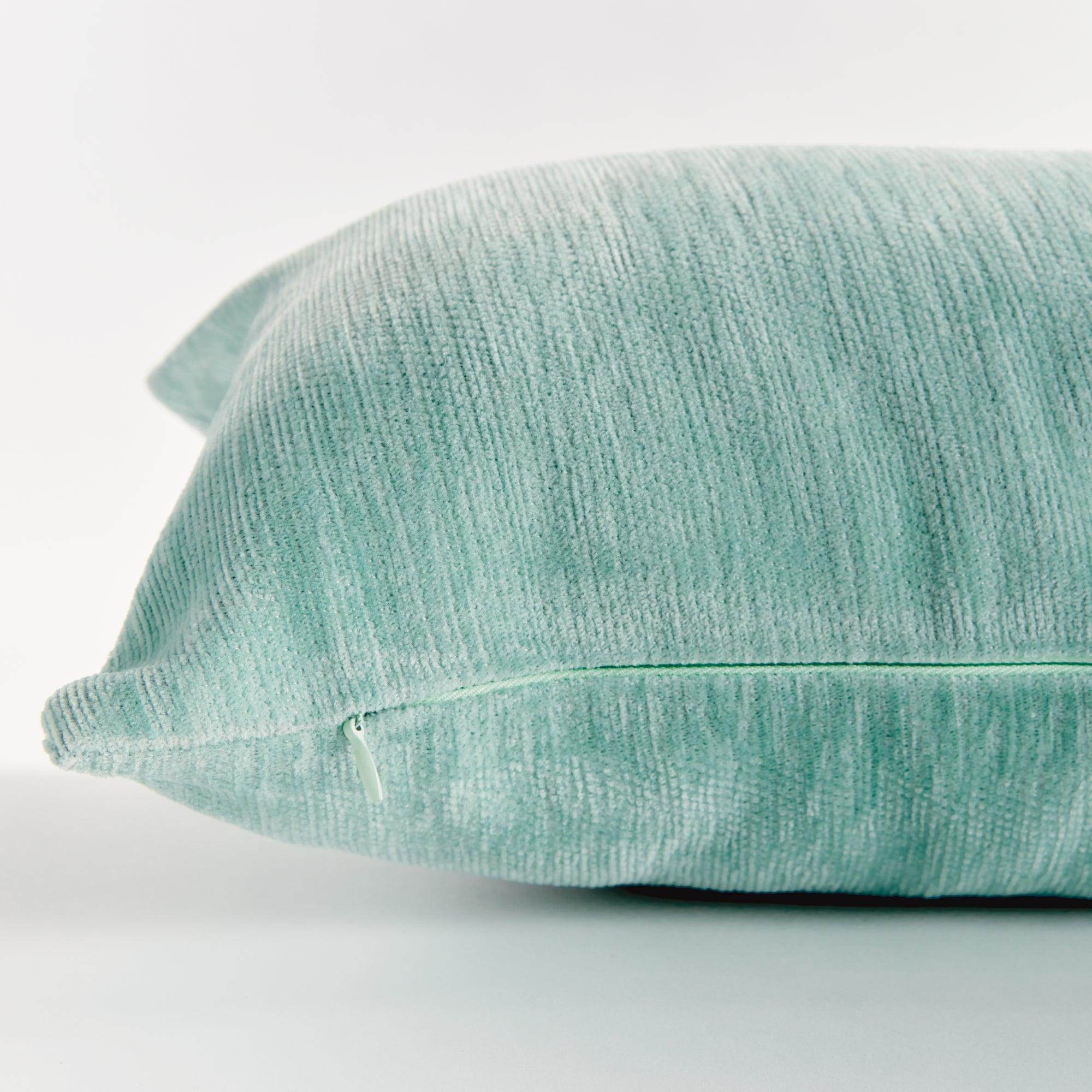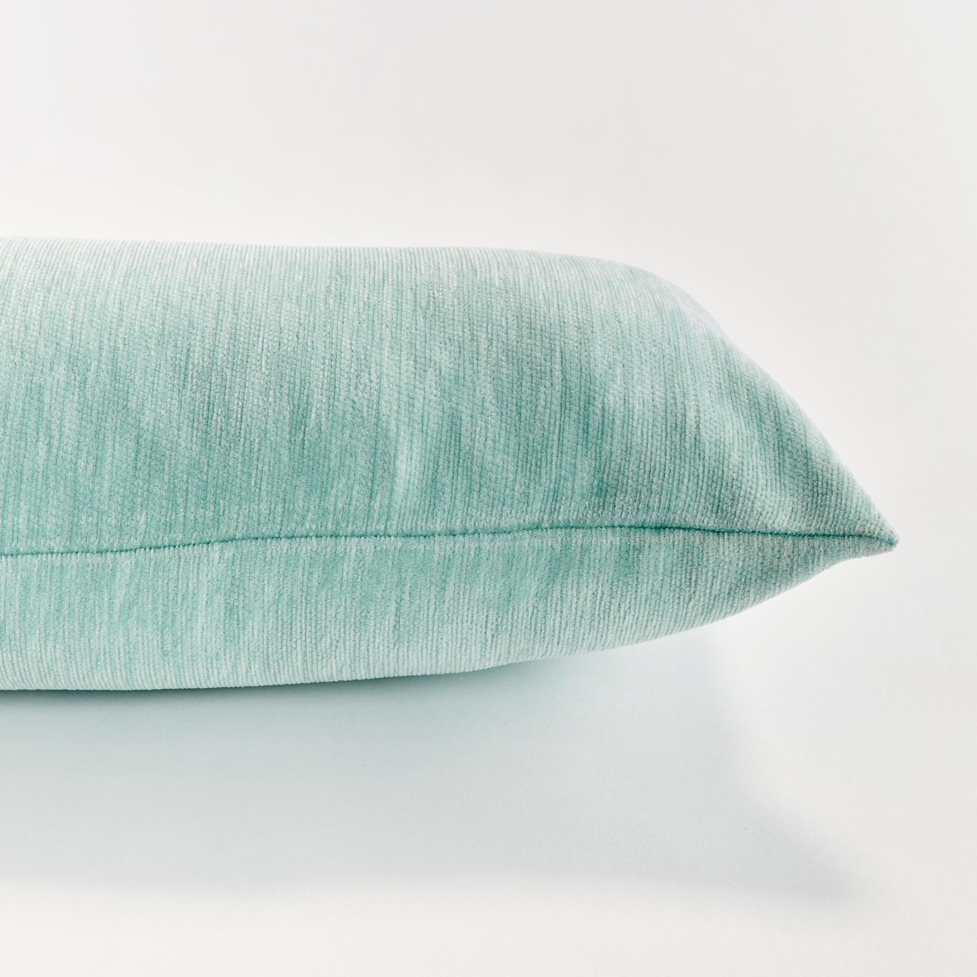 The indoor pillow that lives beautifully outdoors. Enjoy the upscale luxury and durability of Jacquard. With a woven seafoam pattern, it plays well with any palette. This pillow is weather resistant and responsibly made. Filled with 100% recycled fibers.