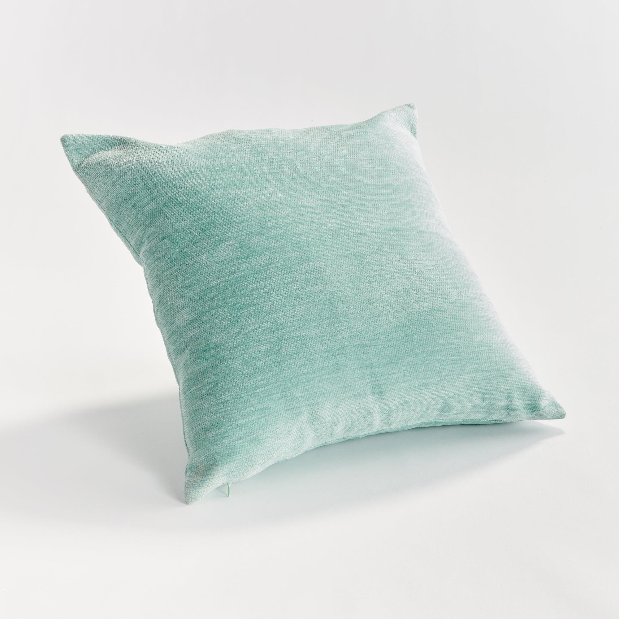 The indoor pillow that lives beautifully outdoors. Enjoy the upscale luxury and durability of Jacquard. With a woven seafoam pattern, it plays well with any palette. This pillow is weather resistant and responsibly made. Filled with 100% recycled fibers.