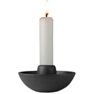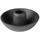 Cast in iron this taper holder with a deep bowl is strong in character when solo and beautiful when amassed. Use a glass hurricane for extra protection when used outdoors.