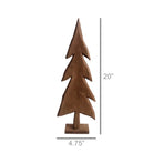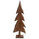 Simple, swaying tree silhouettes carved of natural wood come together to create a fanciful forest of undulating heights.