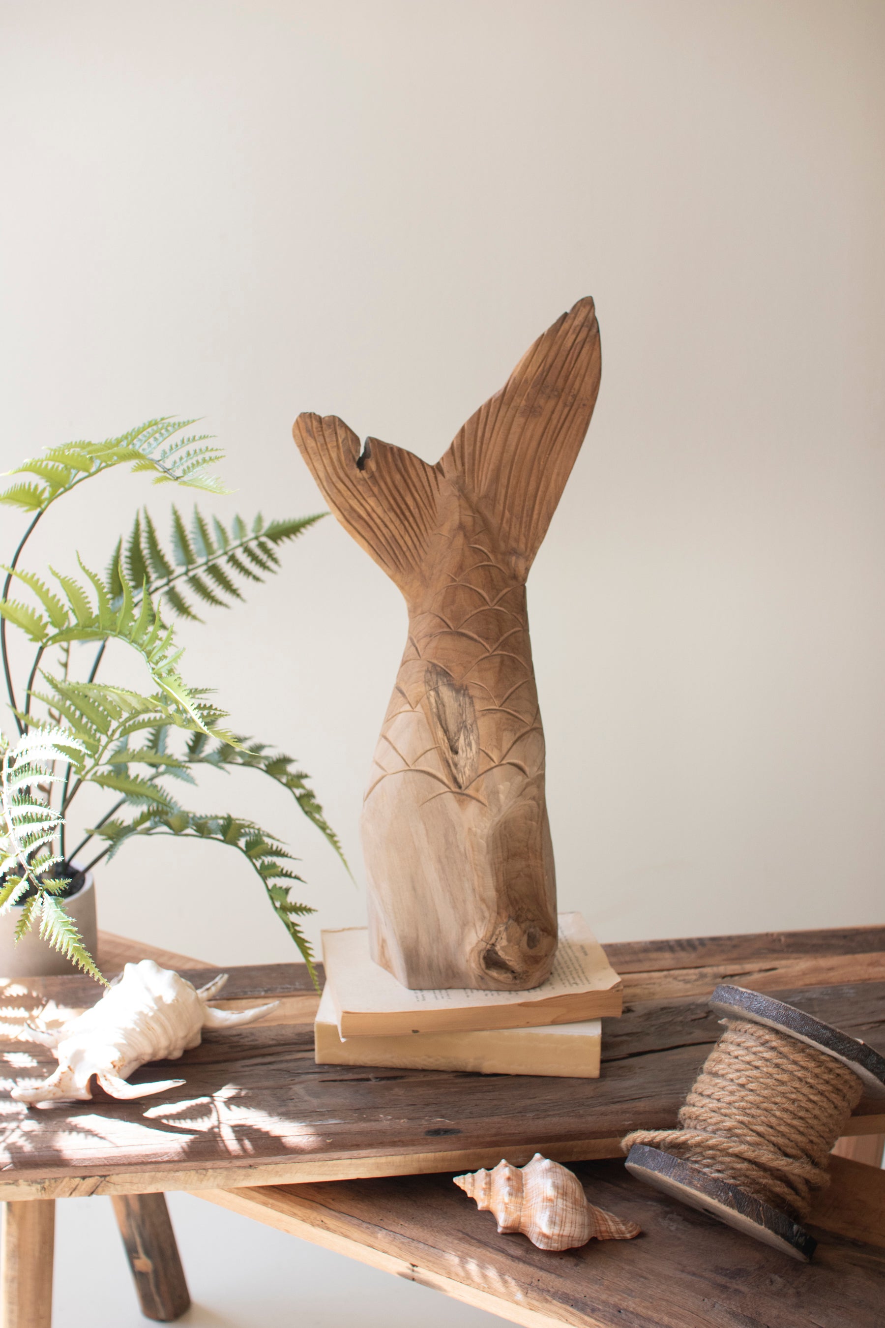 Don't let this white whale tail get away. Perfect for a seaside retreat, this teakwood fishtail sculpture was made in Indonesia. Grab one for the beach house or your favorite Ahab.