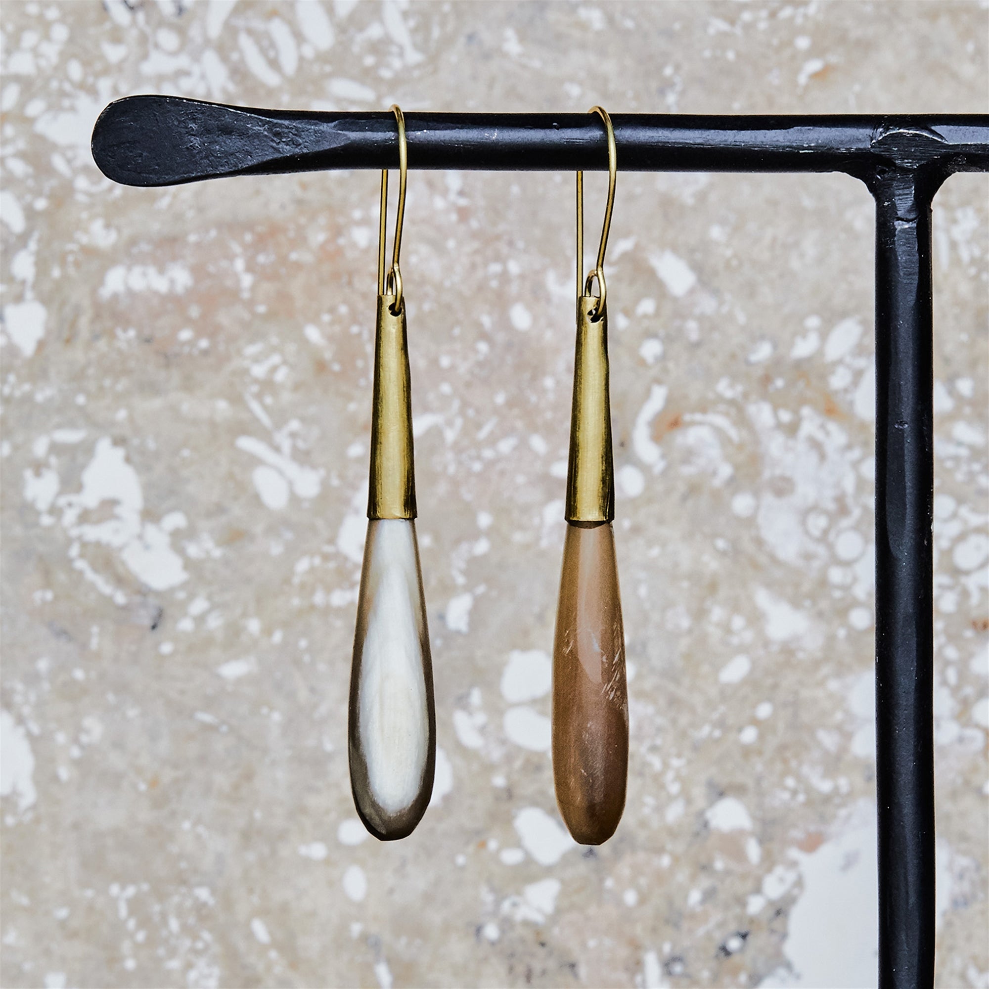 Teardrop Horn Earring - Lrg - Light Horn, Brass
