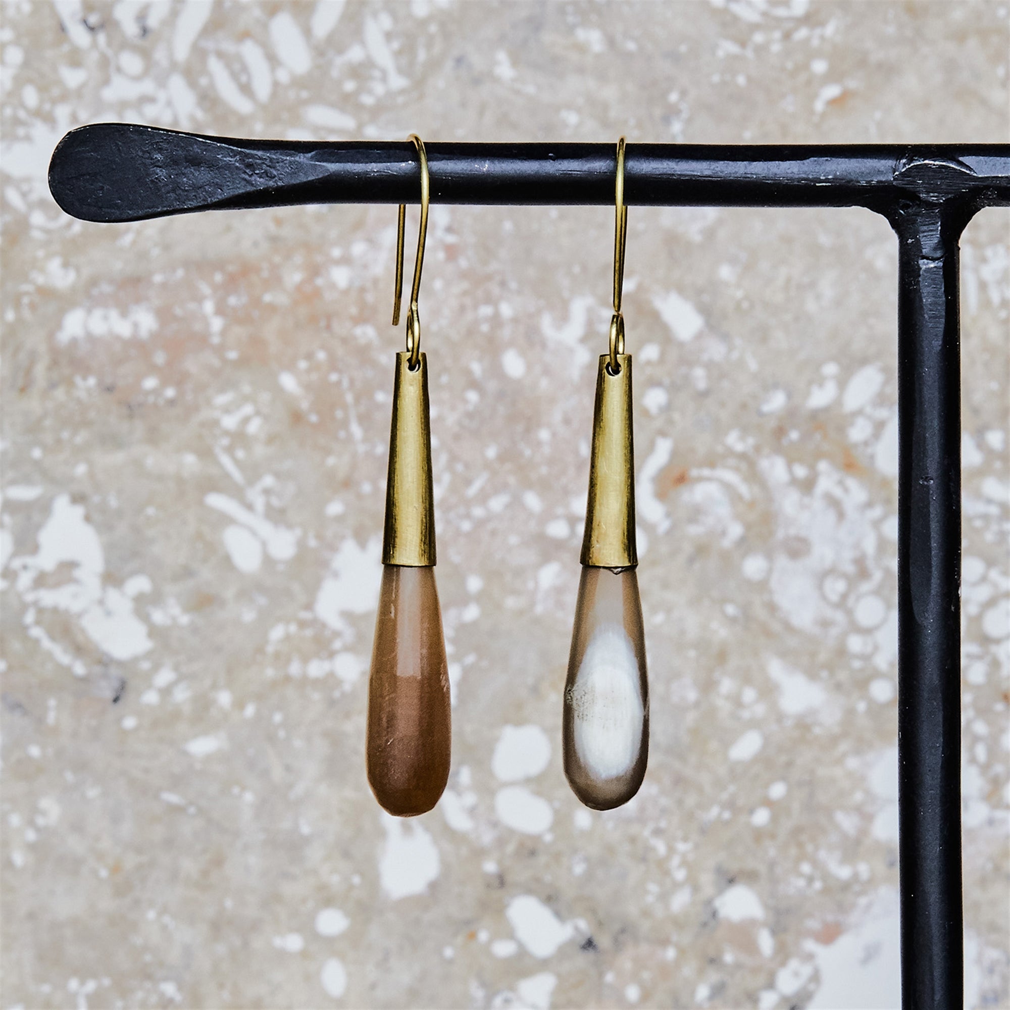 Teardrop Horn Earring - Sm - Light Horn, Brass