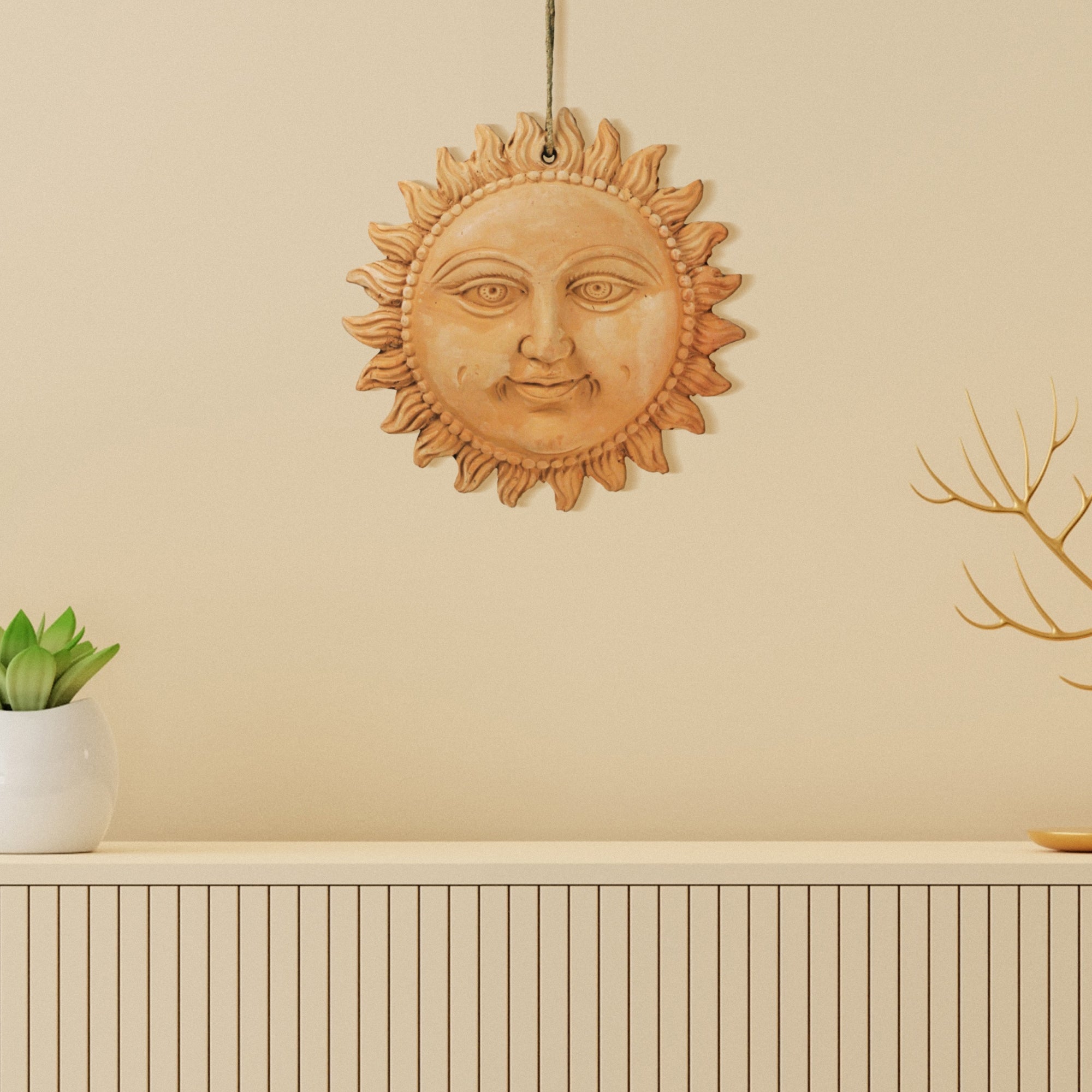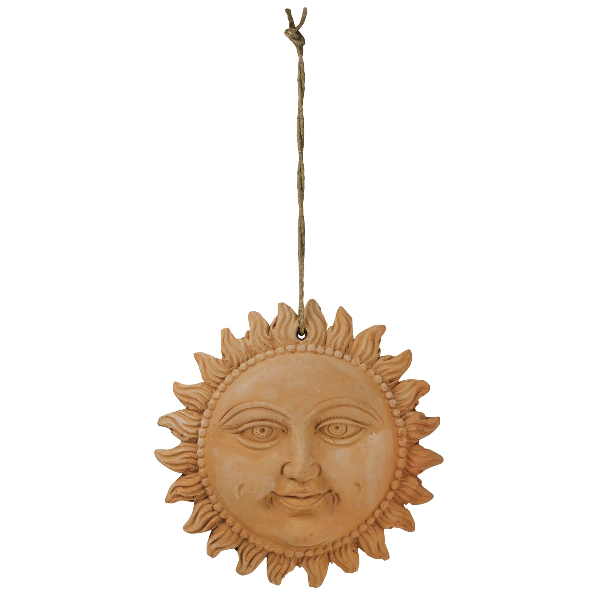 Nothing brightens up a patio or garden like the sun smiling down on it. Crafted of terra cotta with charming detail and hangs from an 11” jute rope. 11” jute hanger