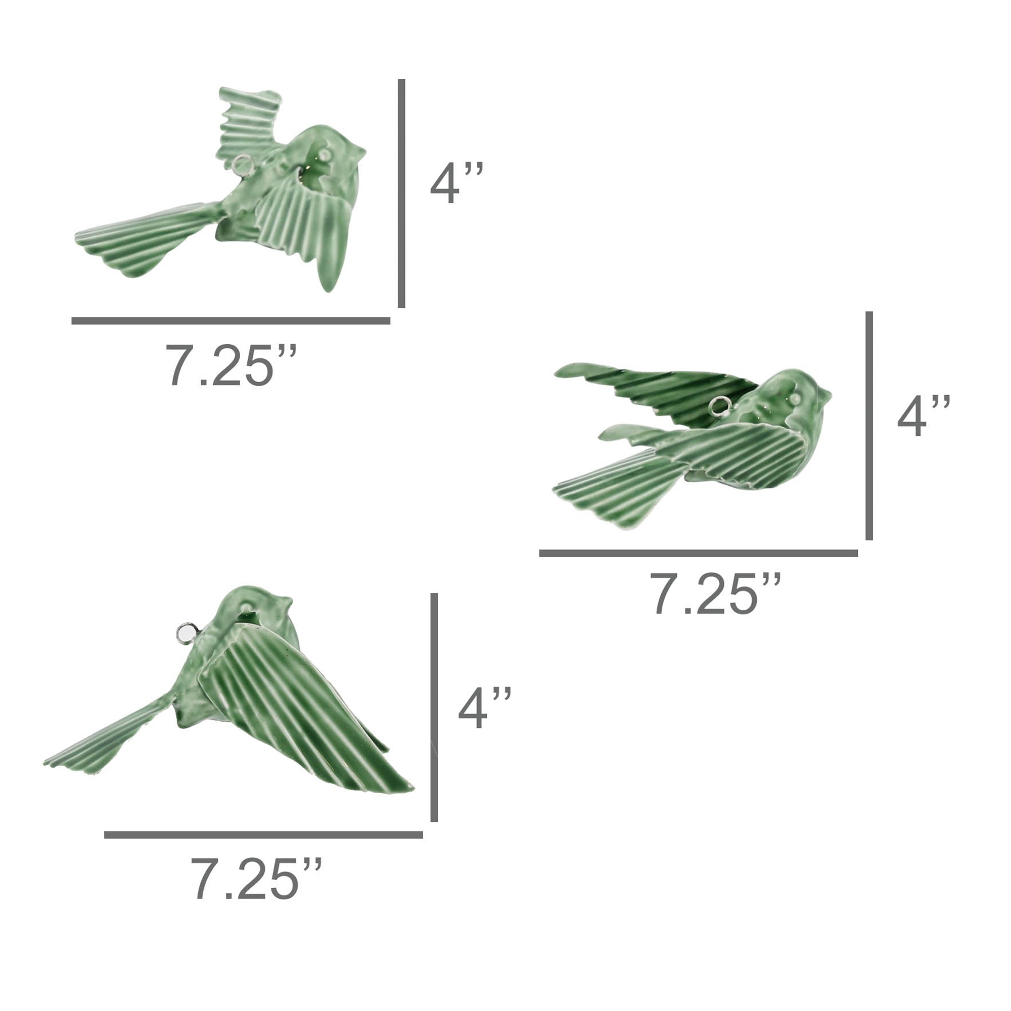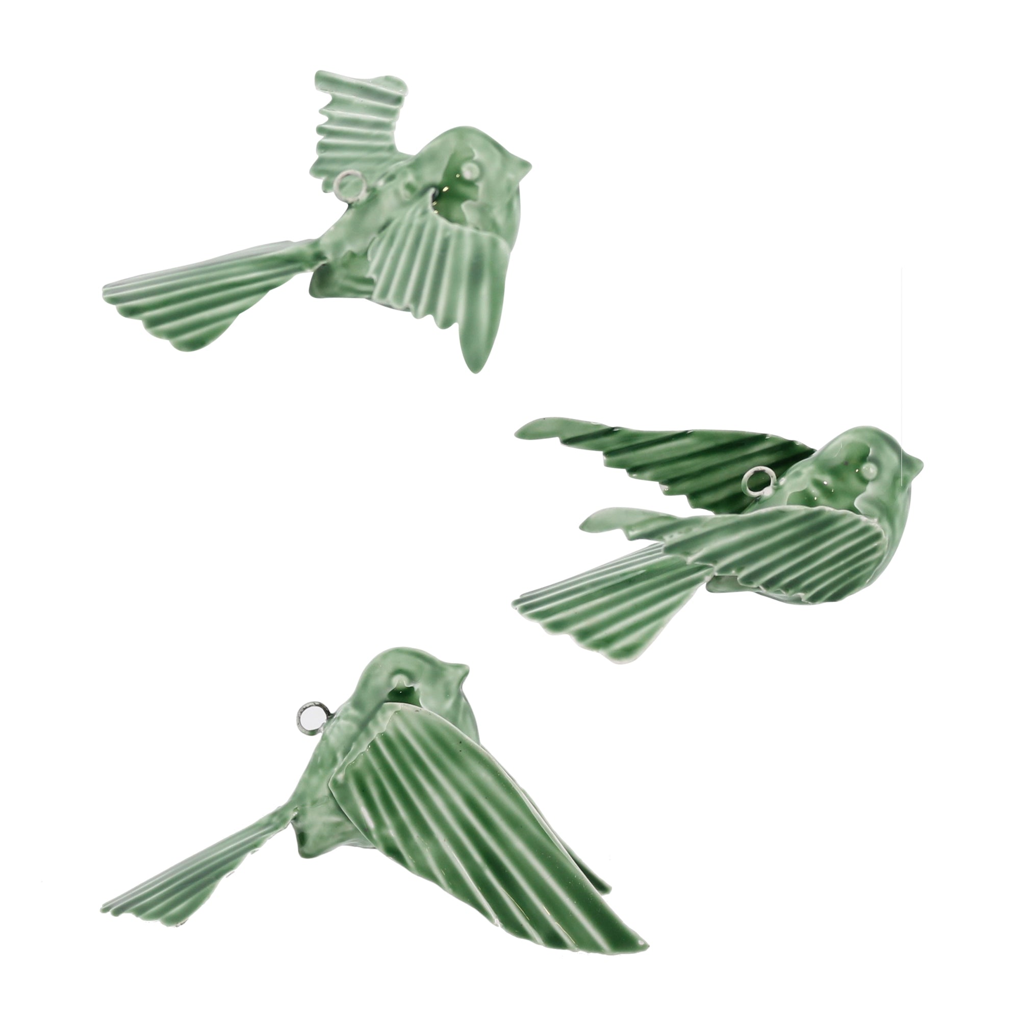 A set of 3 birds in flight are given a glimmering enamel finish.