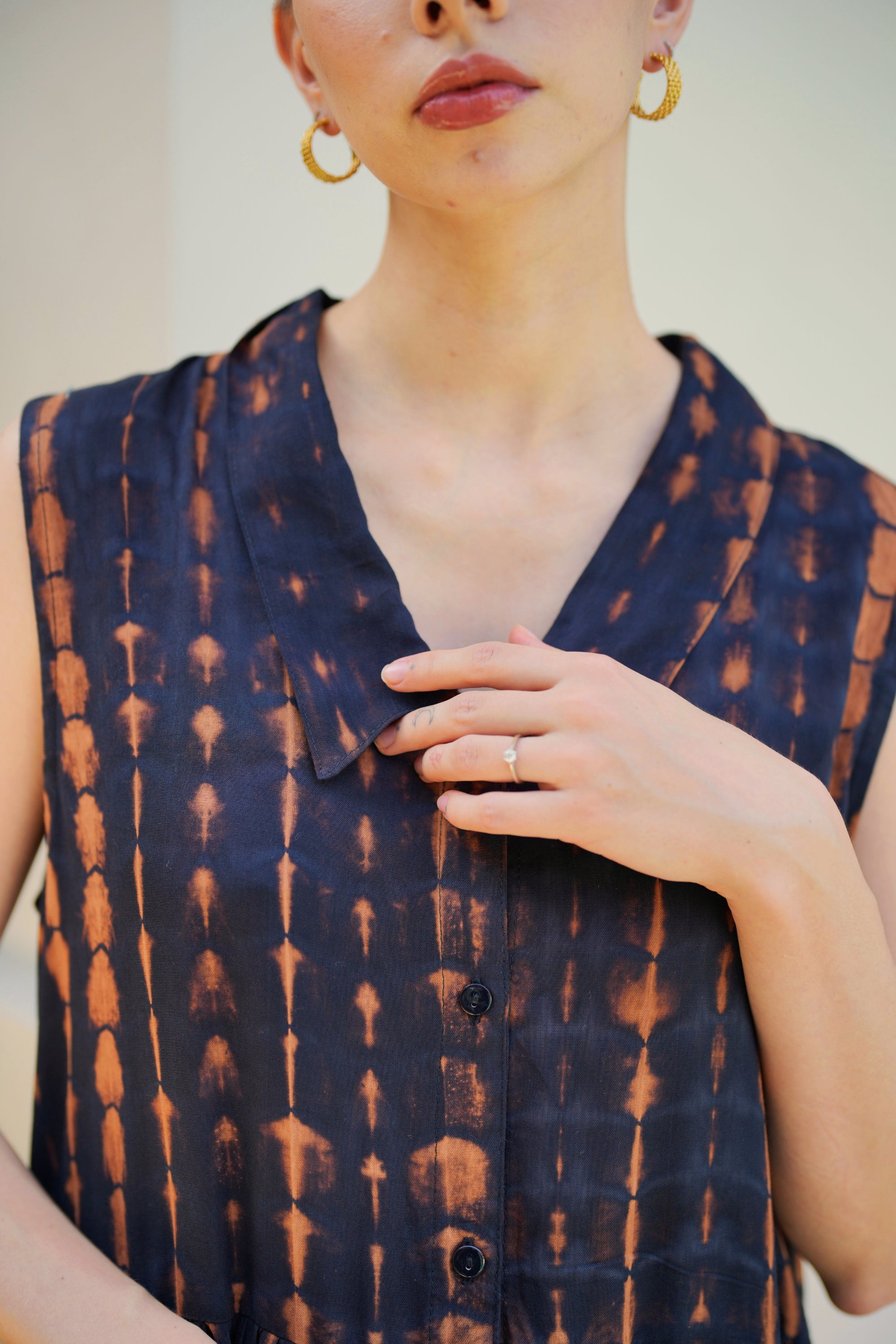 Our Tina midi dress is made to be worn everywhere. This classic buttons fall down the front midi is featured in a hand tie-dyed fabrication and tiered silhouette with a point collar, elongated neckline for a relaxed-fit dress.