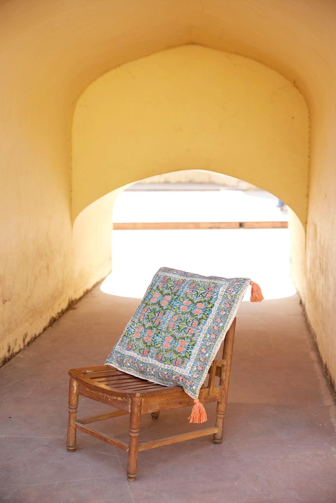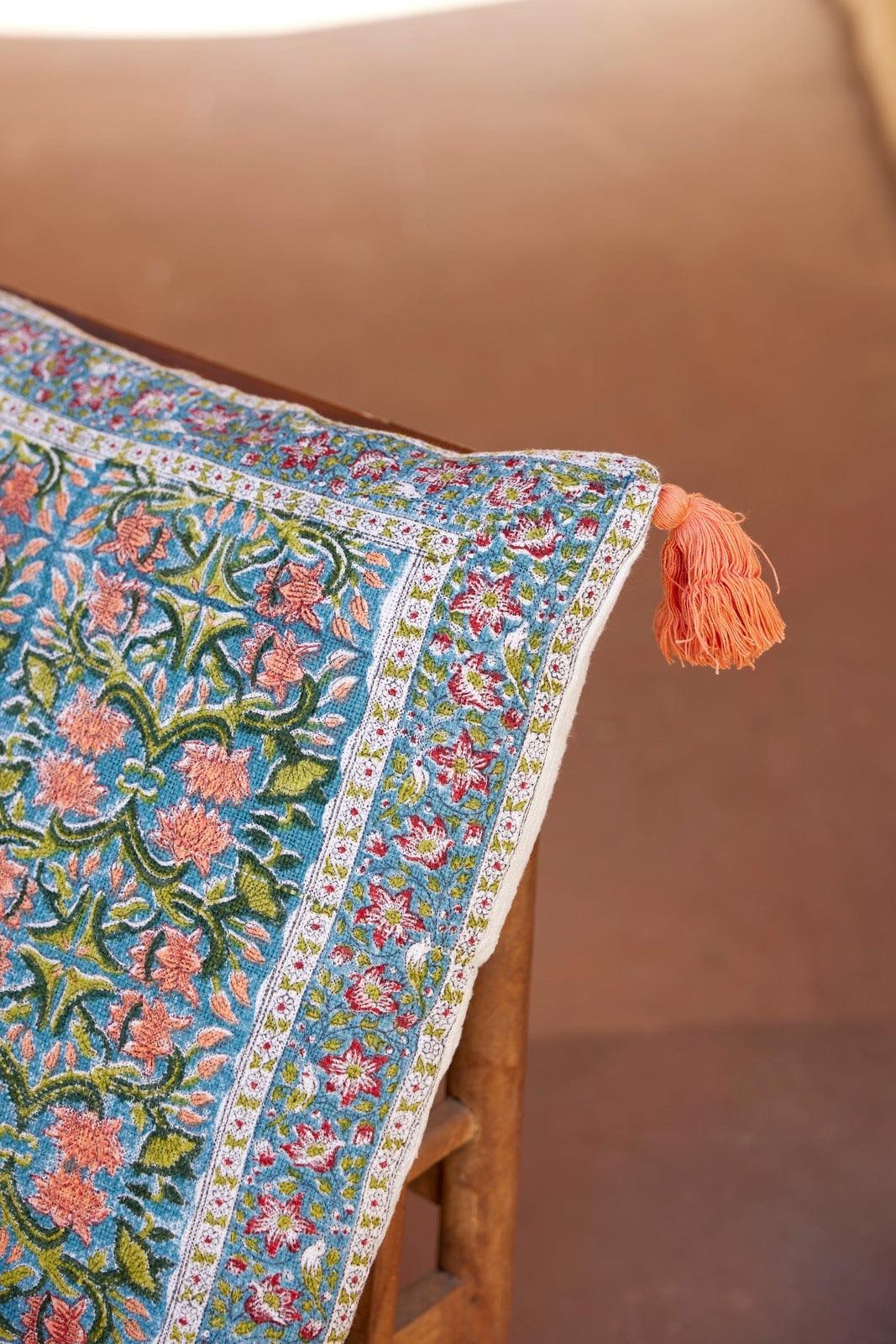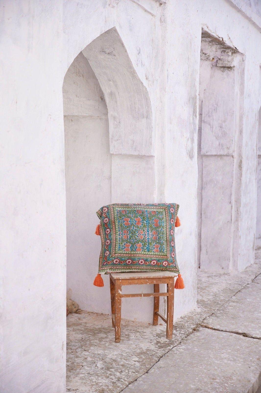The design is hand-pressed onto each sham using hand-carved wooden blocks dipped in dyes.