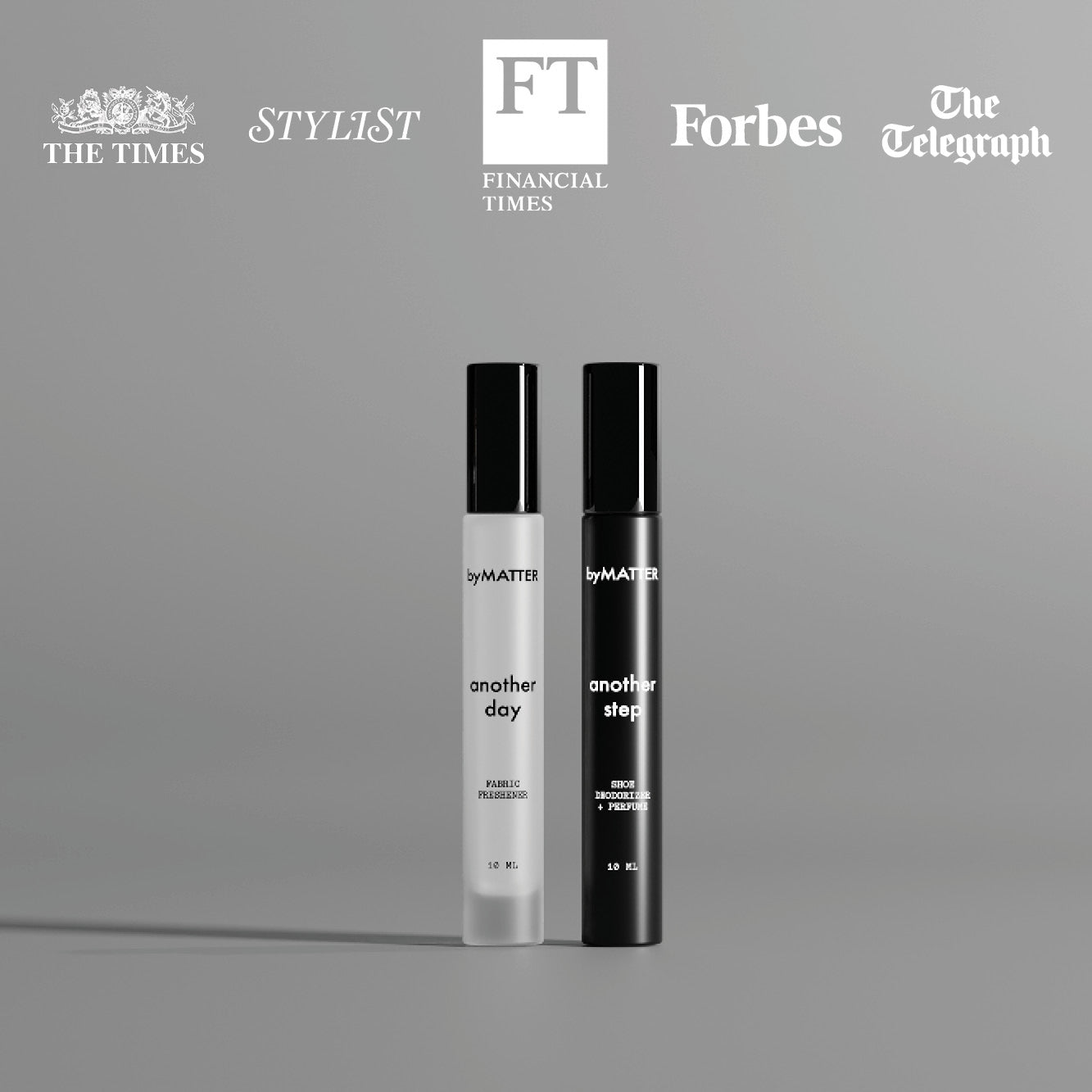 Travel-size versions (10ml / 0.34 FL. OZ) of Another Day + Another Step.