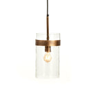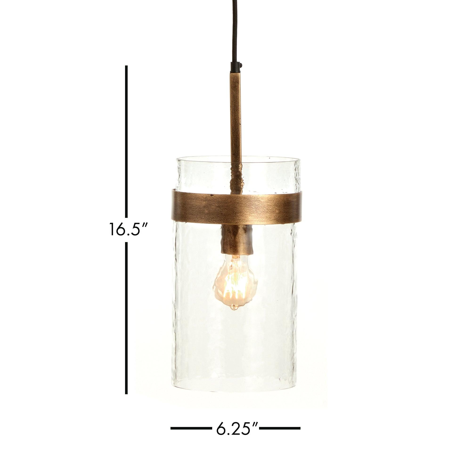 The handwork shows in the details of this well scaled pendant. From the hammered glass to the iron construction, a handsome contemporary choice for entryway or kitchen island.