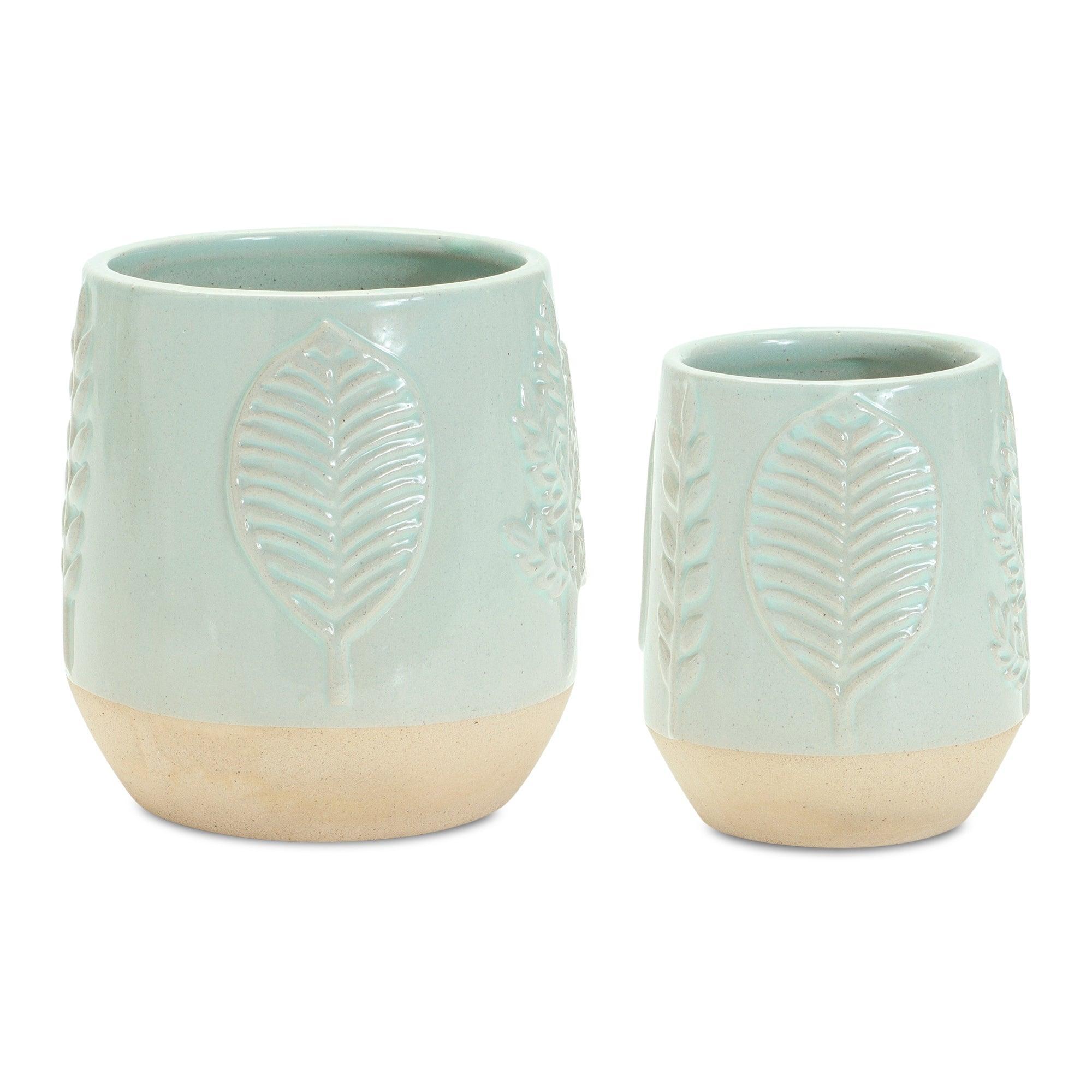 Two-Tone Porcealin Planter with Leaf Design (Set of 2)