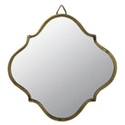 A textured brass frame surrounds beveled glass mirror, perfect in scale to add a bit of reflection in small spaces and quite impactful when amassed. Hangs from a single nail, not included.
