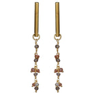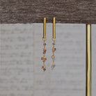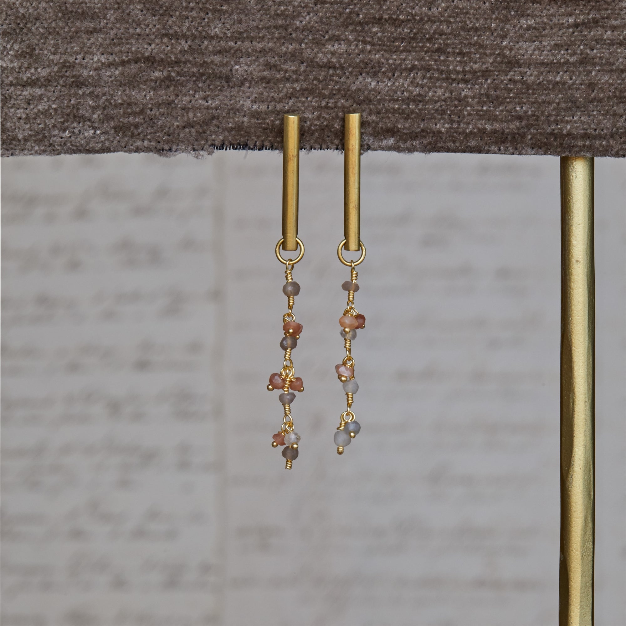 Delicate seed-beads are hand wired to chain creating a waterfall of gemstones hanging from simple brass rods. Post-style earring.