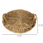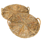 Made of durable rattan these trays make the perfect hard surface for an ottoman or grand-scale appetizer and beverage service tray. Wipe clean with warm water and dry promptly. Sm: 15x15x3, Lrg: 17.5x17.5x3 (Set of 2: $32, $36)