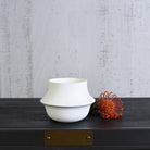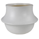 Contemporary in form yet classic in material this uniquely shaped ceramic vase is robed in a matte white glaze to perfectly offset whatever blooms may be bestowed upon it.