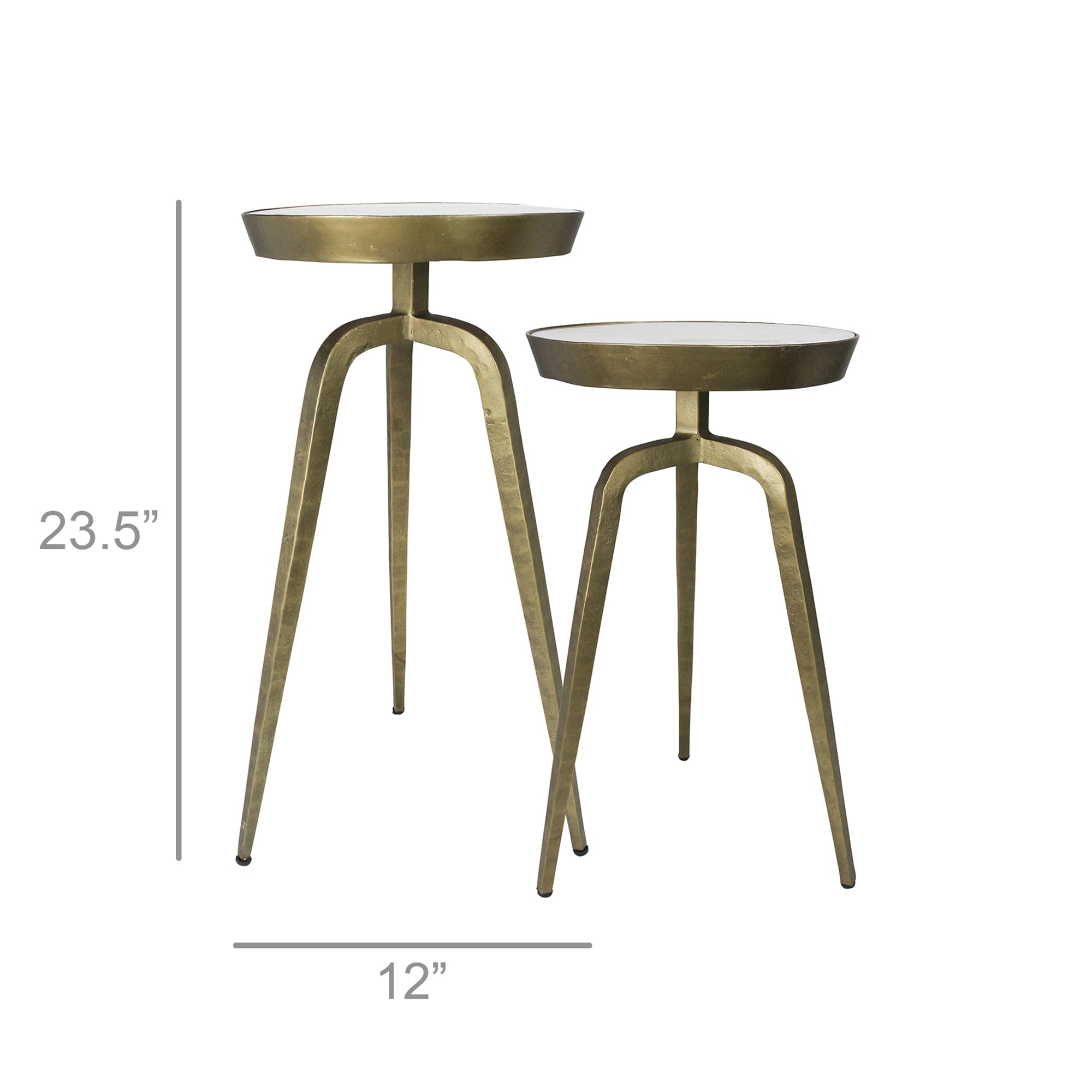 This set of side tables nestles together to create a synonymous surface but could also be happy separated, flanking either side of a couch with asymmetric heights.Forged of iron, plated in brass with a marble top. Sm: 12x12x21, Lrg: 12x12x23.5 (Set of 2: $160, $215)