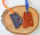 War Eagle! These state of Alabama ornaments feature Auburn colors and a cut-out heart at Auburn University's location. They are perfect to hang on the Christmas tree, tie to a gift, or hang in your window. These precious, handmade ornaments are pressed with lace to create unique and beautiful patterns, and are sure to make you and your loved ones smile!