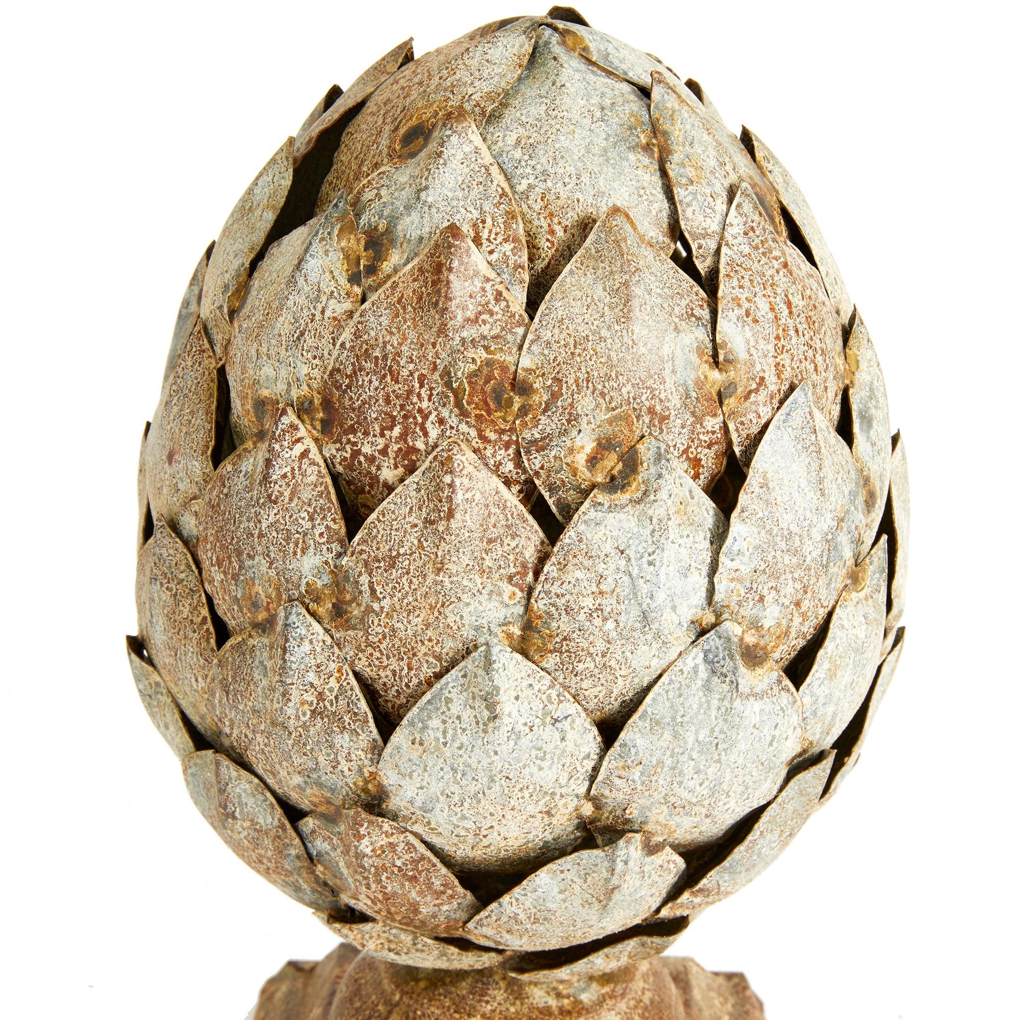 Constructed out of iron and galvanized metal, this oversized artichoke finial adds texture and depth. A great way to bring in that market-found look to your space.