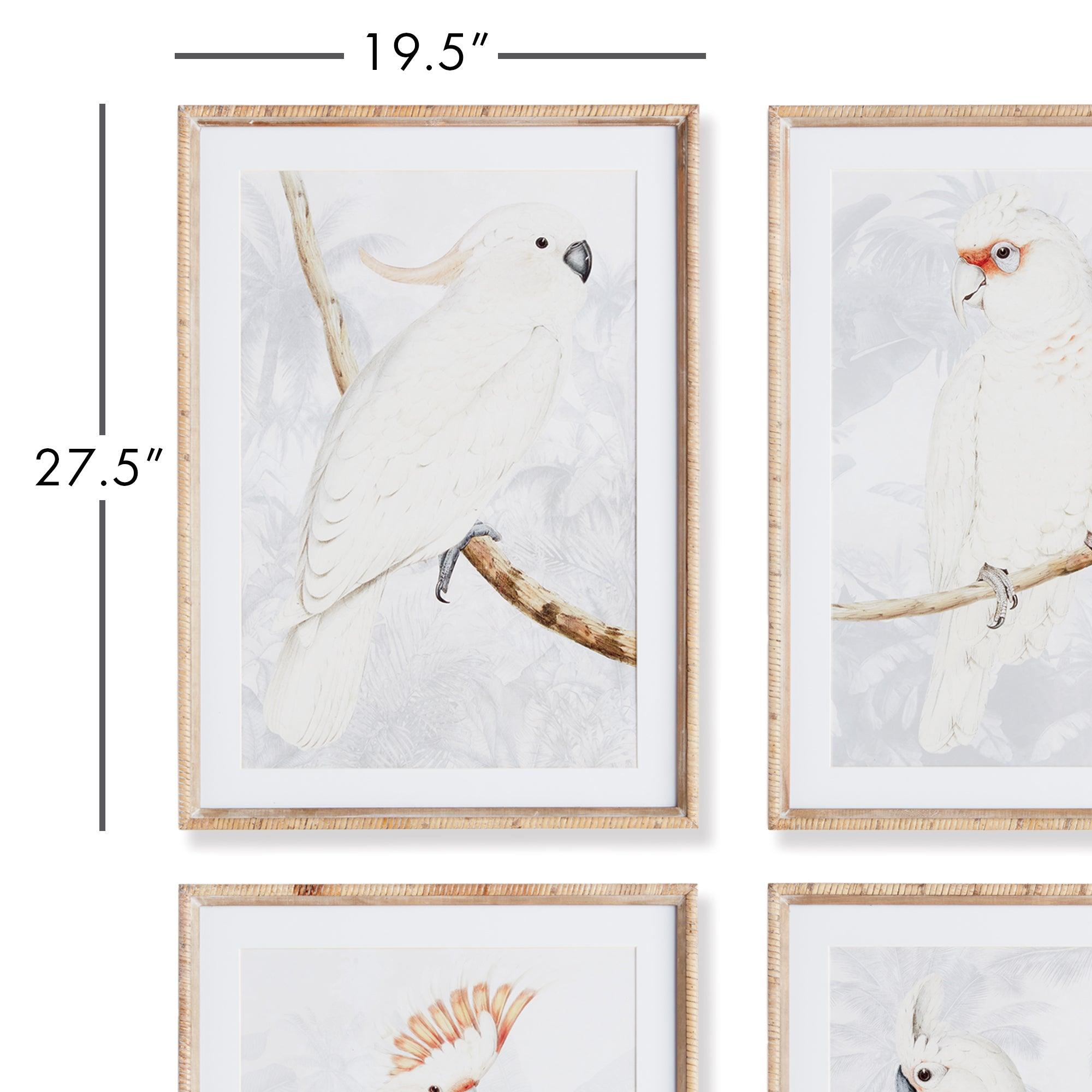 These parrot prints are designed in an unexpected neutral palette. In a classic British Colonial style, they are made for the coastal or beach cottage, but are truly at home in any traditional setting. Finished in distinctive rattan-wrapped wood frames.