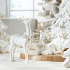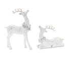 Enhance your holiday décor with this Winter Deer Figurine Set, featuring wintry white and grey tones with a trendy whitewashed finish. These rustic deer characters are adorned with charming pinecone wreath accents, adding a natural and festive touch to your seasonal displays. The set includes two assorted designs, for a beautifully varied arrangement. Perfect for displaying on a tabletop, shelf, or mantle, these deer figurines pair effortlessly with a holiday Santa statue, seasonal floral arrangement, or a set of pine trees, bringing warmth and elegance to your festive décor.