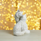 Celebrate the season with this elegant Winter Fox Couple Figurine Set. Designed in wintry white tones, these graceful fox characters feature a loving pose that adds warmth and charm to your holiday décor. Crafted from polyresin, this matching set of two makes a beautiful addition to a tabletop, shelf, or mantle. Pair them with a seasonal floral arrangement or holiday trees to create a serene winter scene.