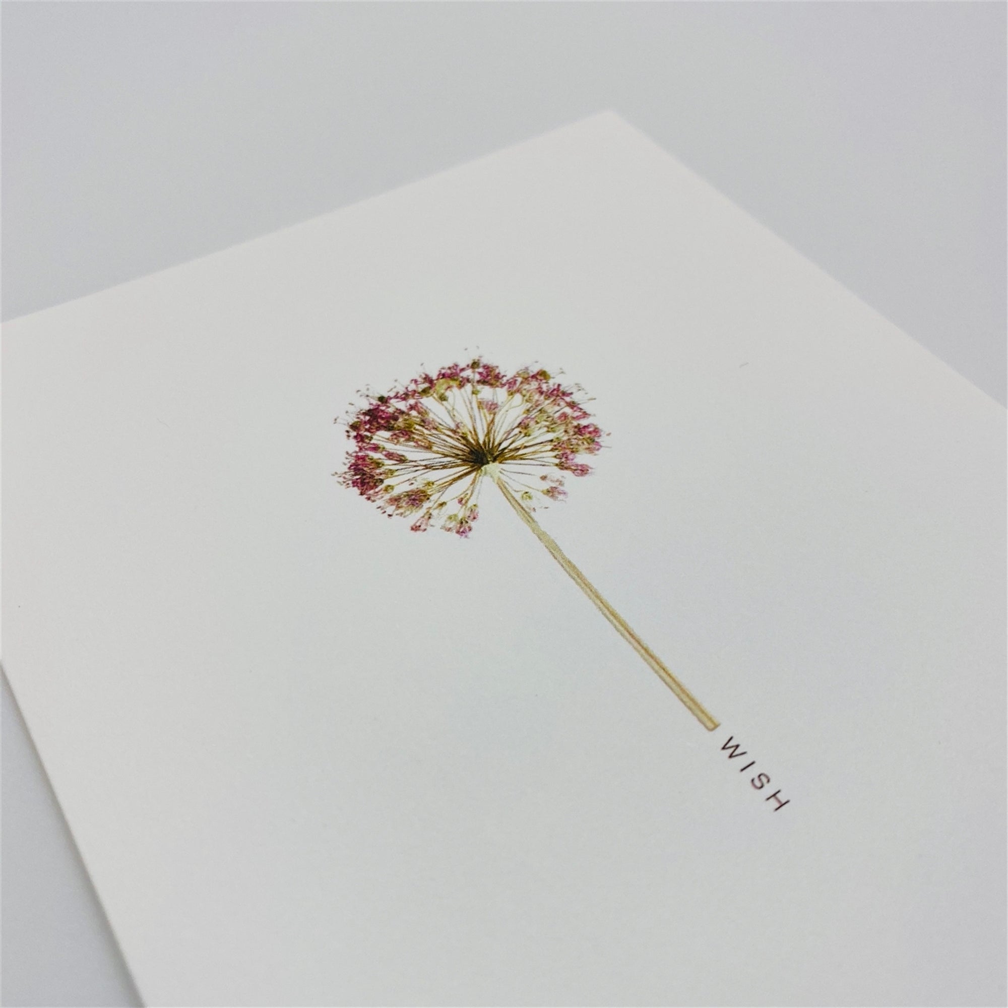 Greeting cards feature images of pressed botanical specimens and thoughtful expressions in a modern typography. Folded cards with the Inside left blank for a personal sentiment. Each card is paired with a kraft colored recycled paper envelope and a c