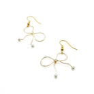 Keeping you right on trend with these sassy bows, our artisans created the With a Bow earrings by tying a bow with gold plated wire and attaching white majorca pearls to the ends. They hang playfully from gold plated hypoallergenic fishhooks. 1 1/8 inch bows hang at 2 inches total length.
