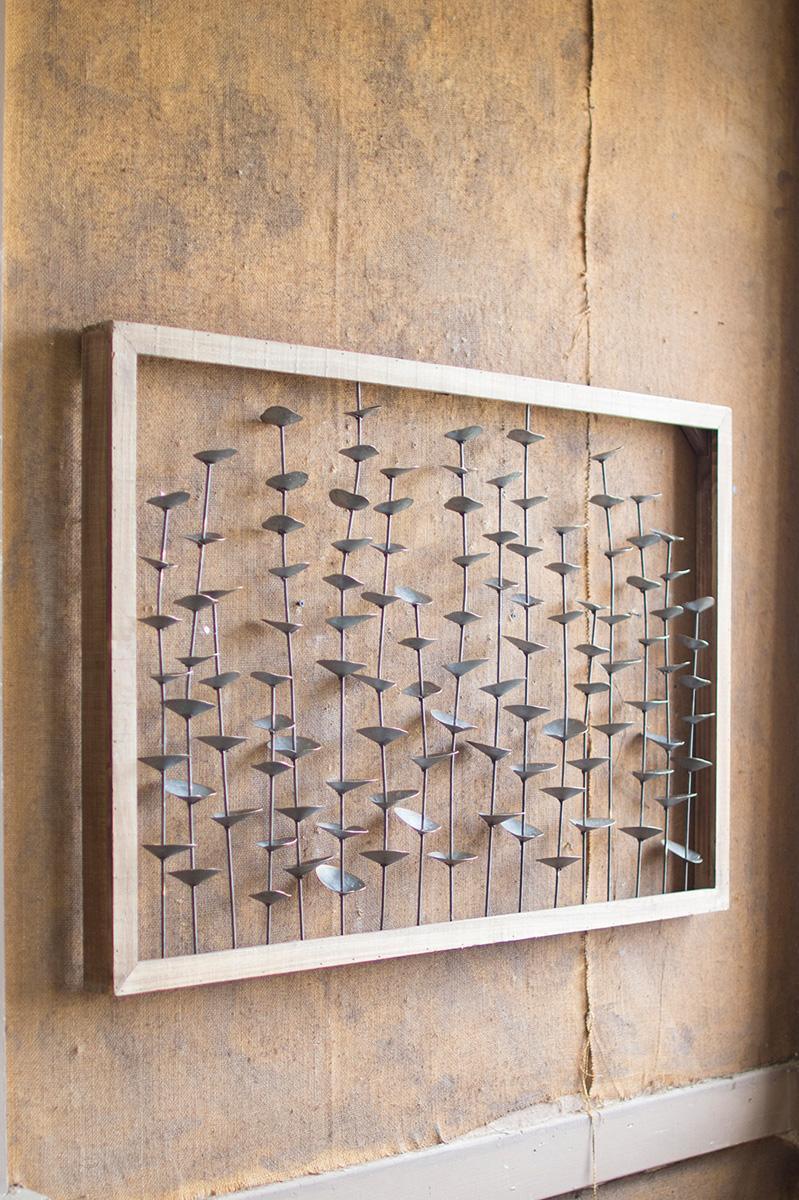 Wood Framed Metal Leaves Wall Hanging