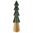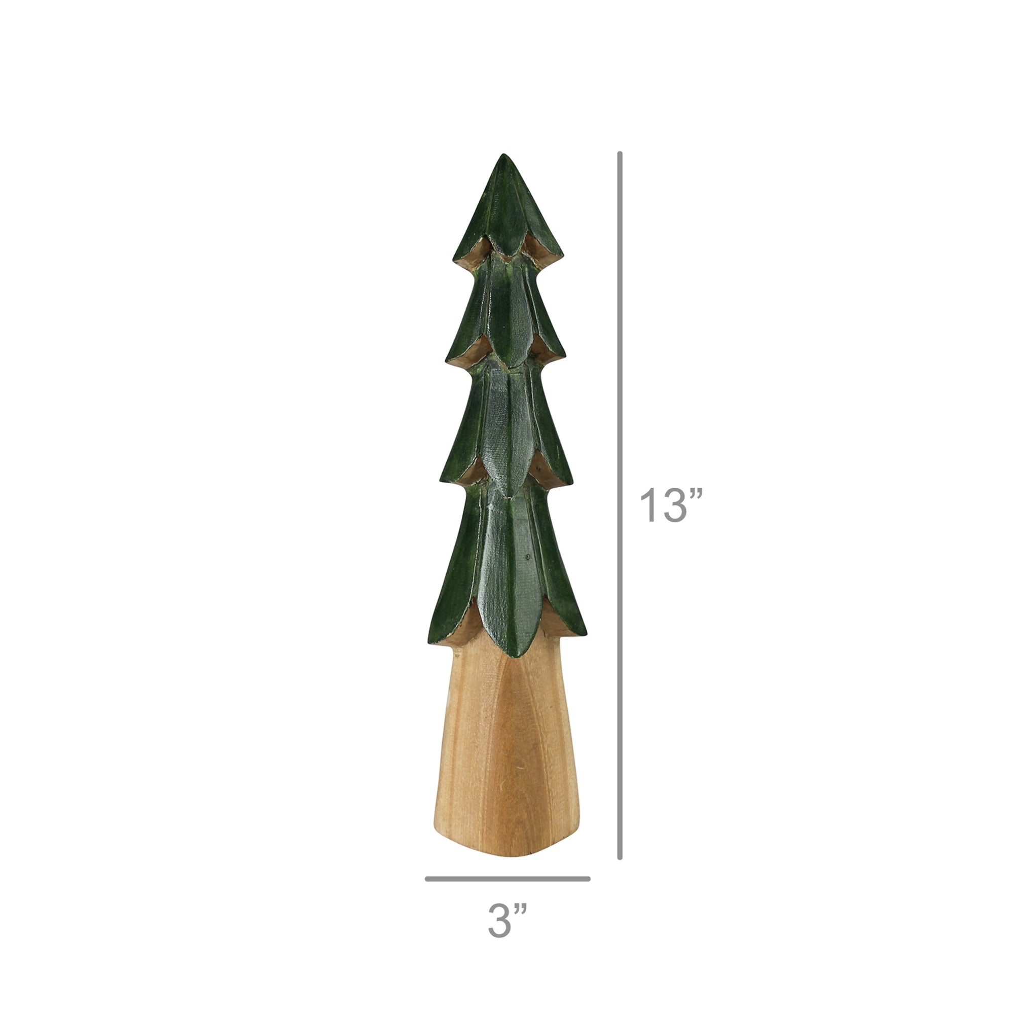 Carved from a single piece of wood, this primitive and simple tree emulates seasonal festivity with its deep dark green bows and natural wood trunk.