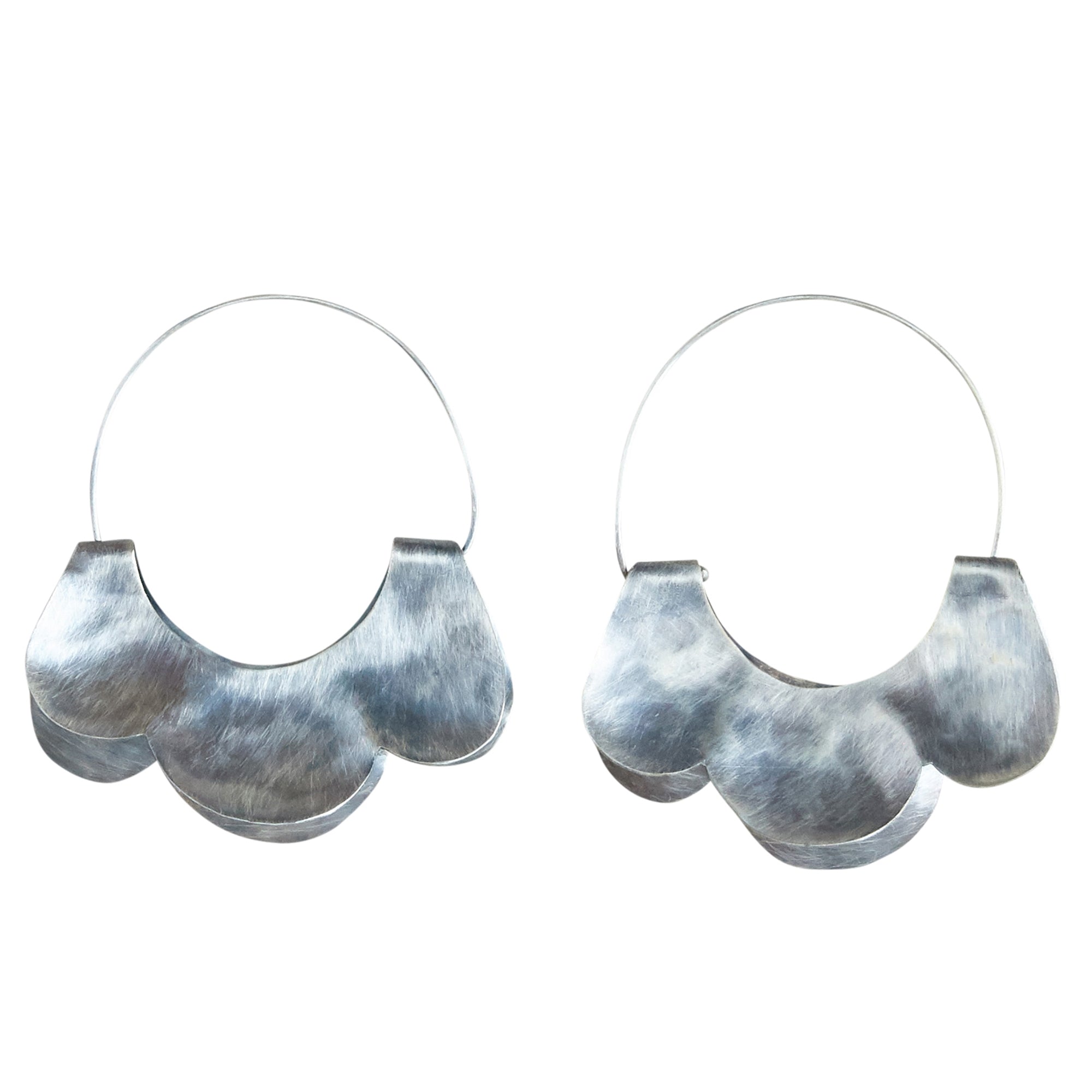 Like a butterfly with closed wings, metal forms are folded over mirroring each other front to back. Gently hammered and slightly concave the texture and dimension of each piece are awe worthy. Silver-plated.
