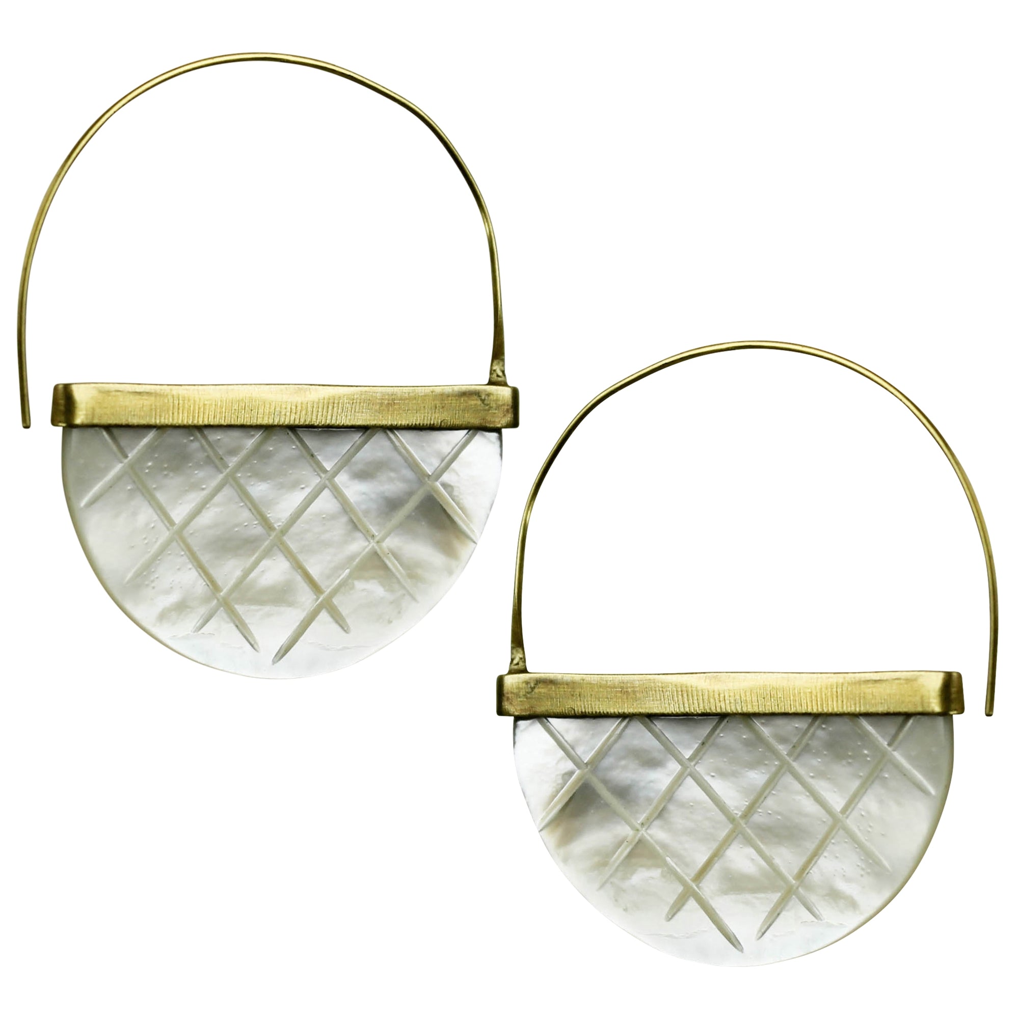 Zahara Earrings, Cross-Hatch, Mother of Pearl