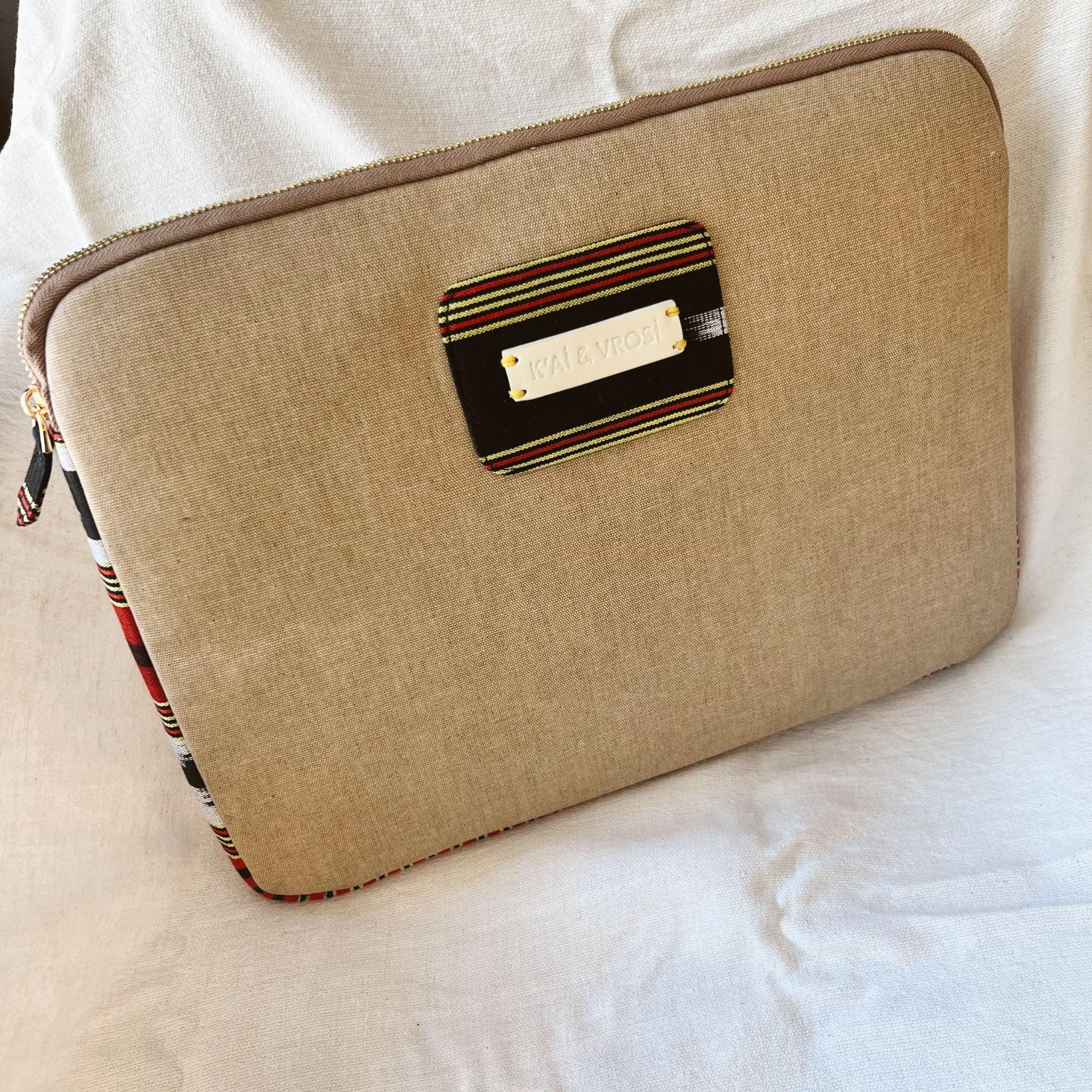 Zipped, Patterned, Cream Canvas Laptop Case for 13" 14"