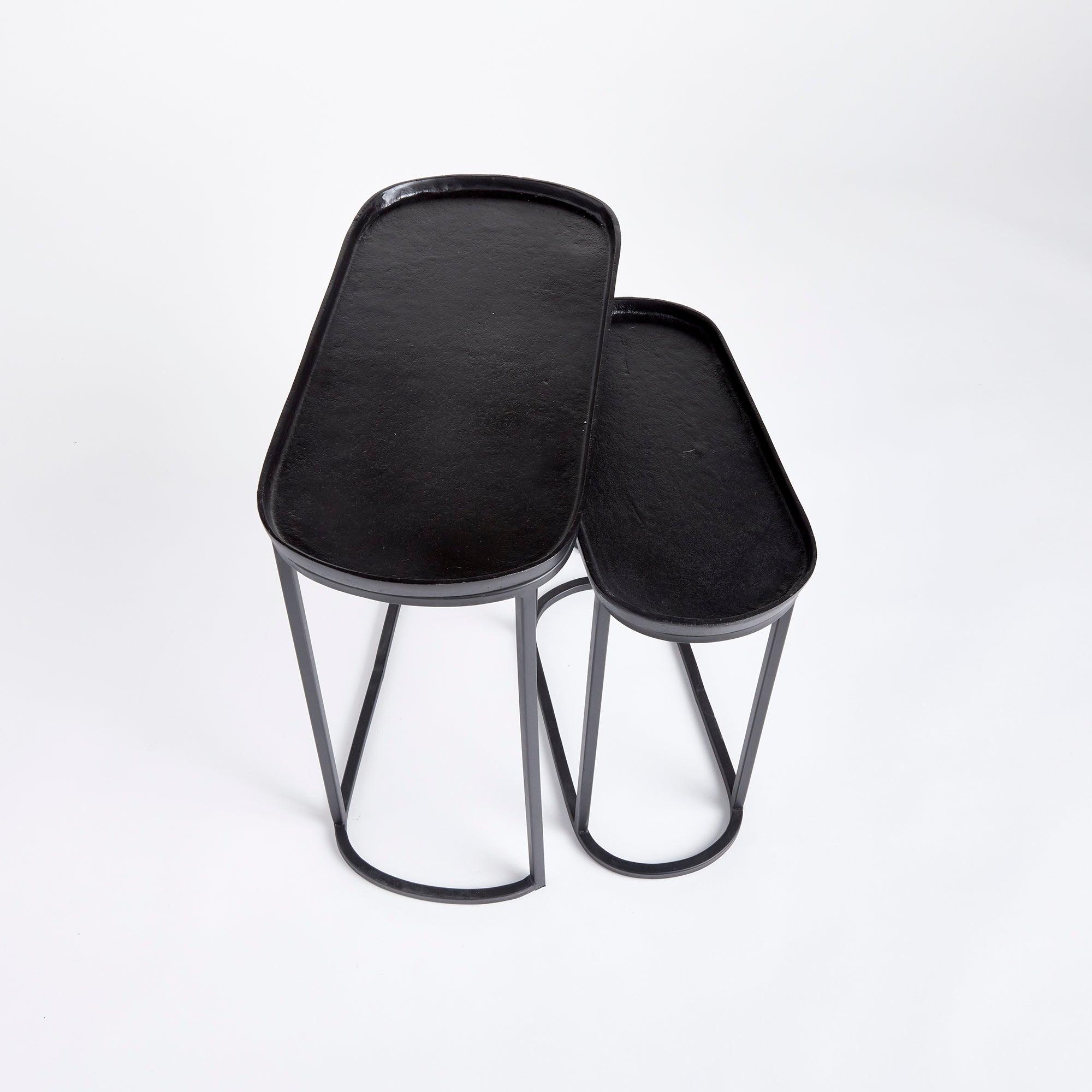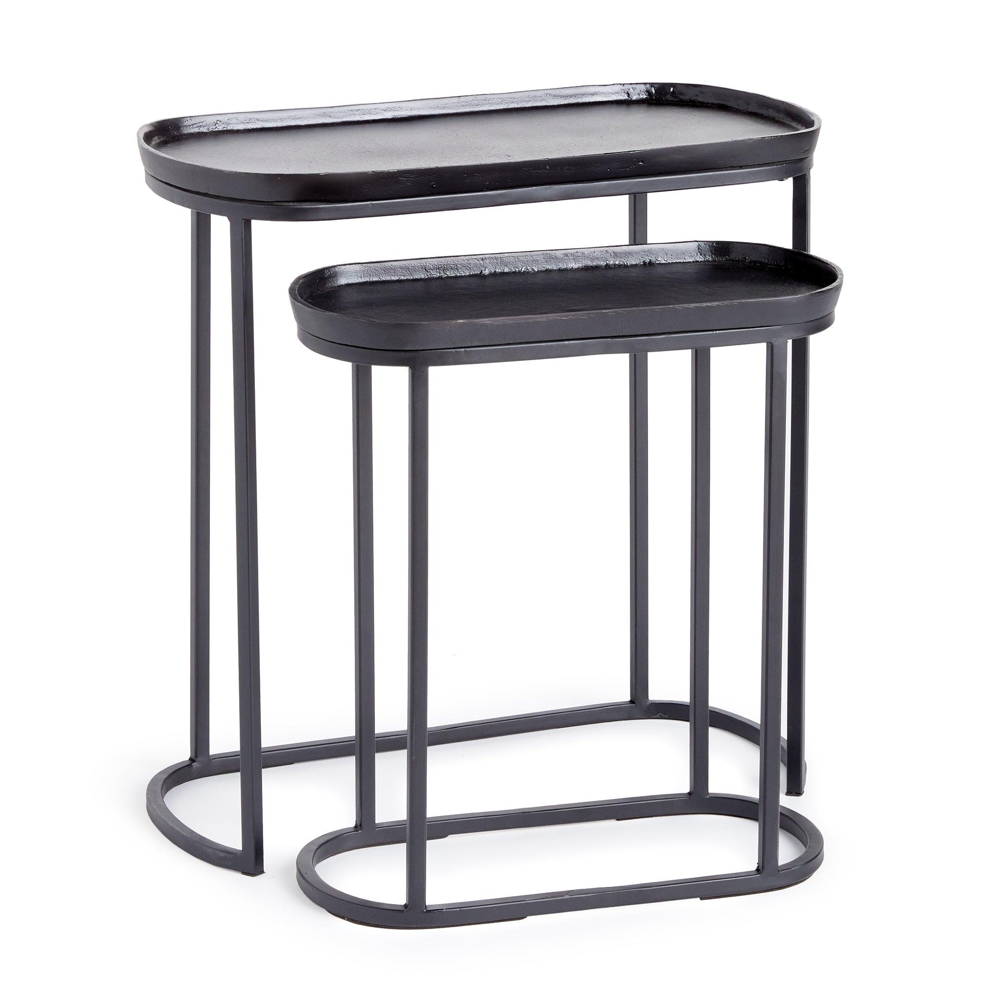 Who doesn't love the versatility of a nested side table? In an electroplated cast aluminum top and iron legs, these two pieces fit together nicely, or can be separated to accommodate your layout. Innovative and beautiful, indeed.